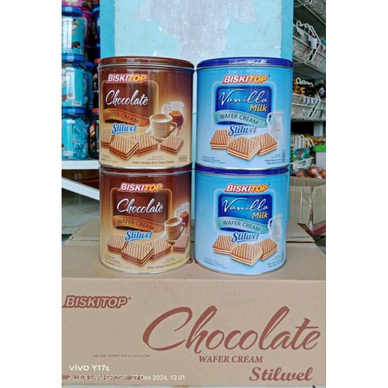 Wafer Biskitop Kaleng Biskitop Vanilla Milk Chocolate Wafer Cream