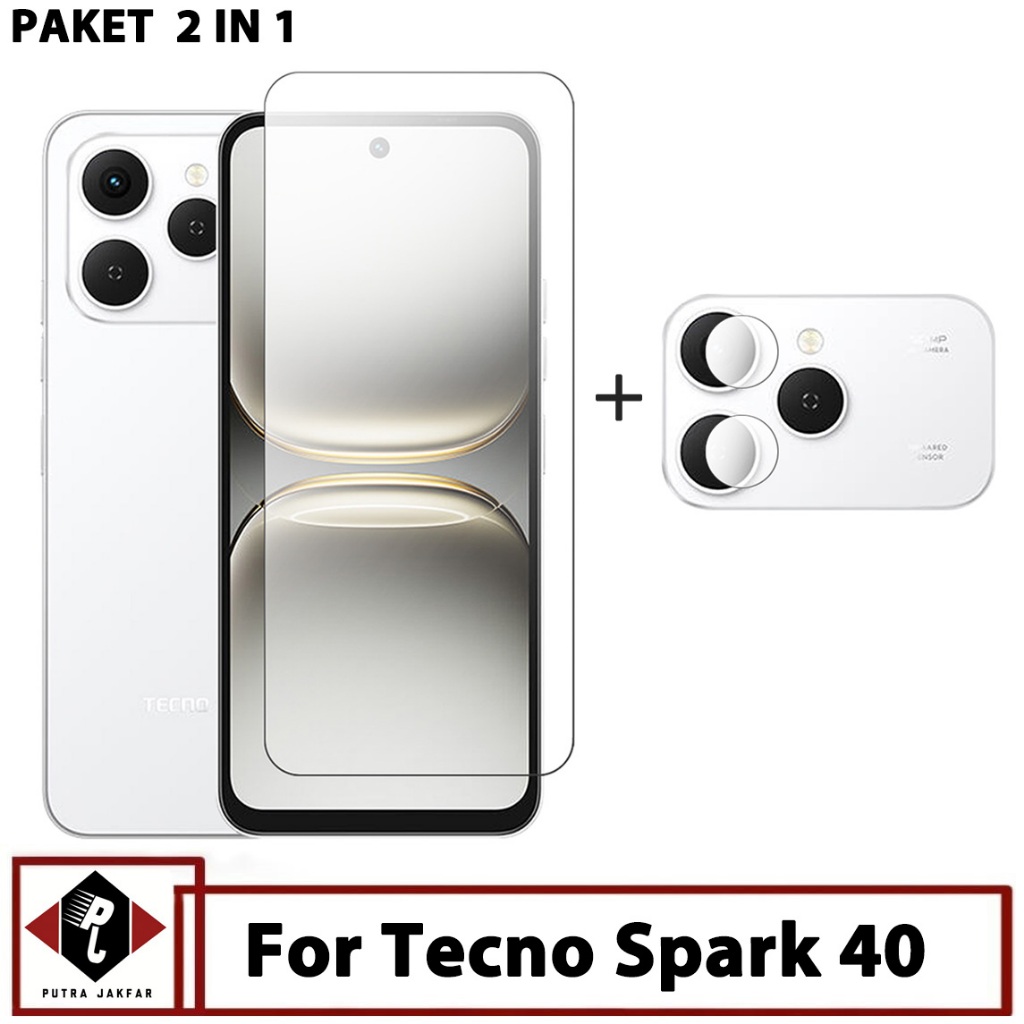 Paket 2in1 Tempered Glass Layar Tecno Spark 40 Free Anti Gores Camera HP