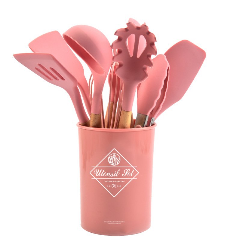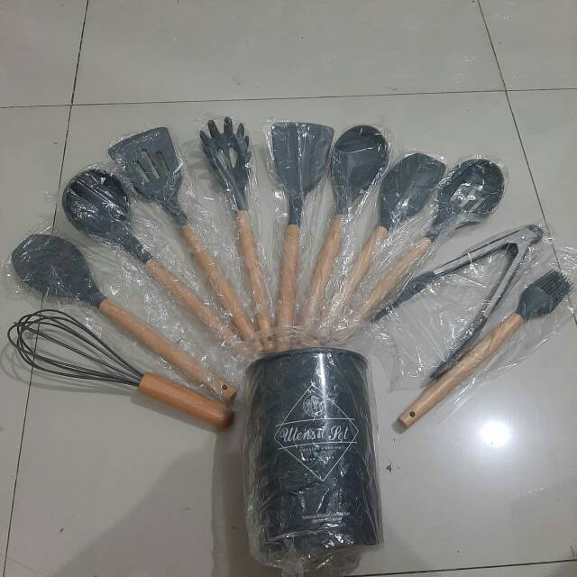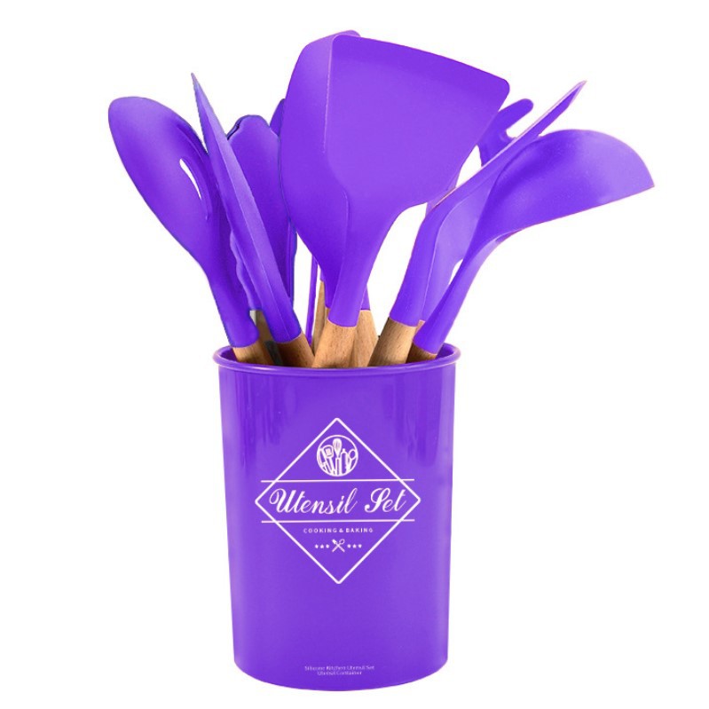 Silicone Utensil Set isi 13pcs Spatula Silicone Set BPA Free + Wadah + Alas Sendok