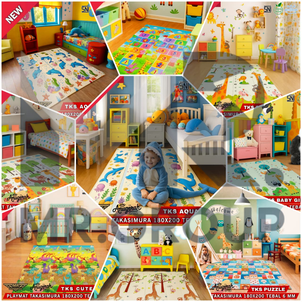 YAKIMURA PLAYMAT BABY UKURAN 180X200 TEBAL 6MM BAHAN PE FOAM 2 SISI BERBEDA MOTIF