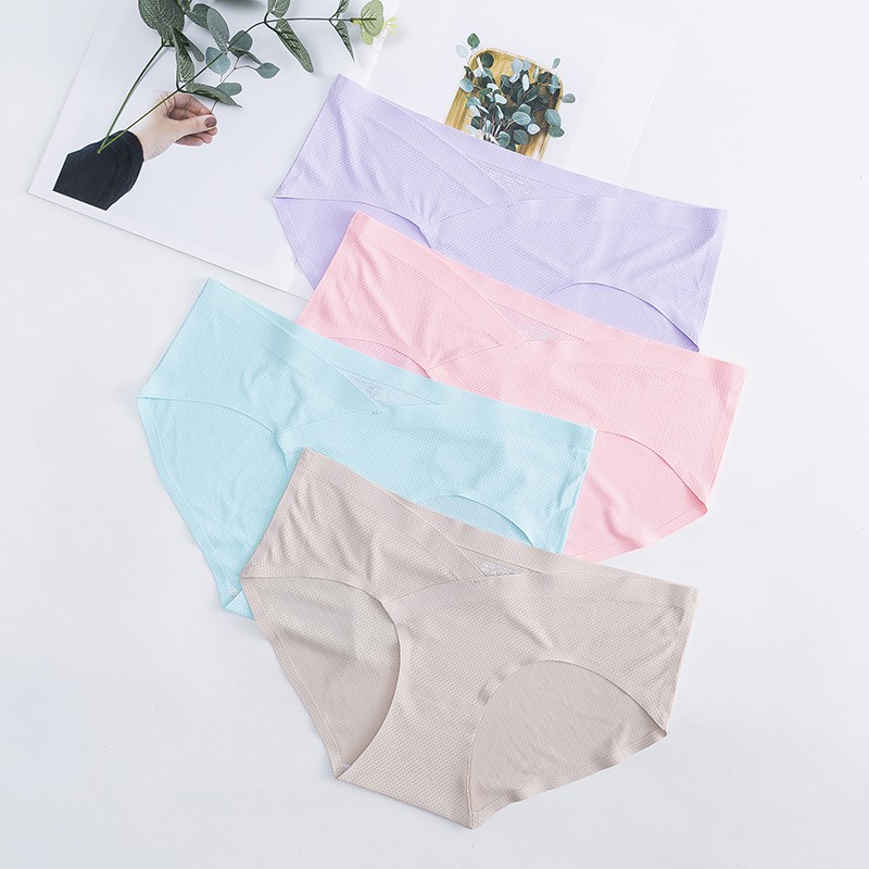 Celana Dalam Hamil Seamless CD Wanita Rendah Pinggang Panty Es Sutra Bumil Sepinggul CD Bernapas H738