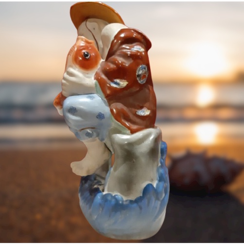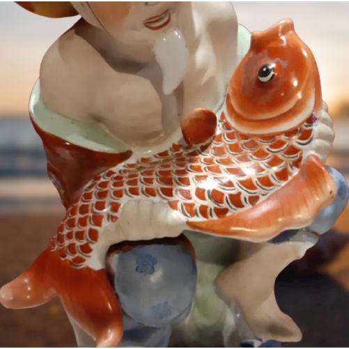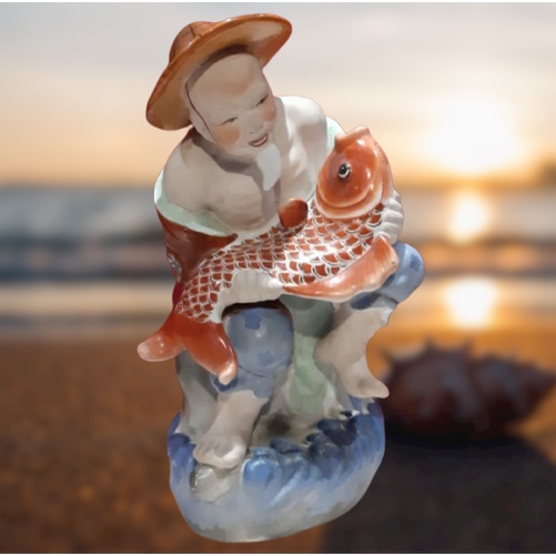 Patung Antik Keramik Jingdezhen Orang Tua Menangkap Ikan Koi