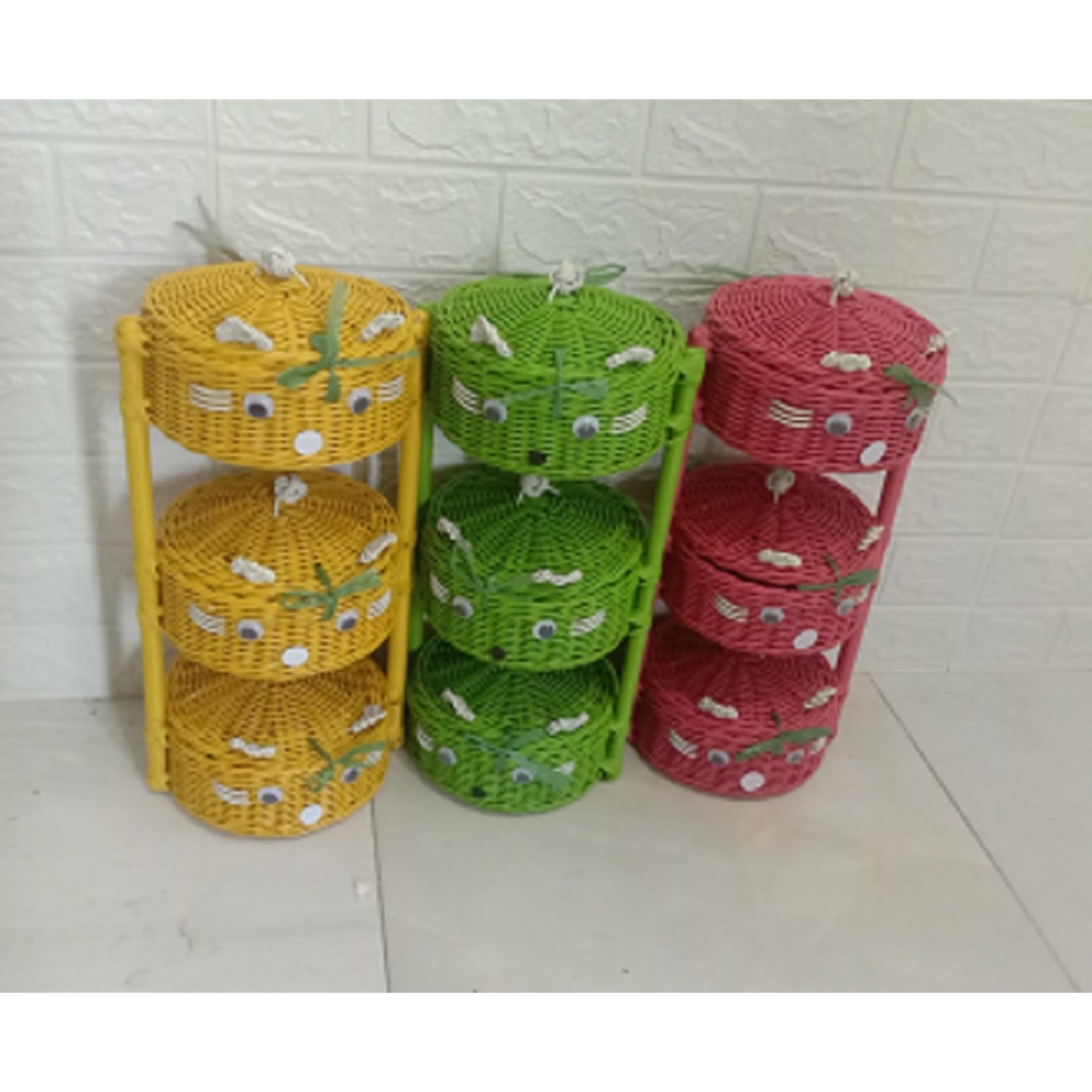 Rak Bawang dan bumbu dapur rotan/sintetic keranjang tutup rak susun tempat telor keranjang bumbu tempat serbaguna tempat bawang rak gantung Rak serbaguna/rak bumbu/rak bawang rotan sintetis murah
