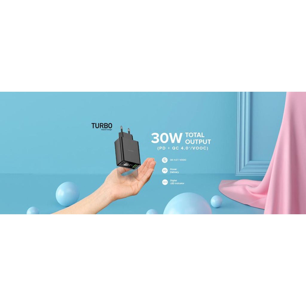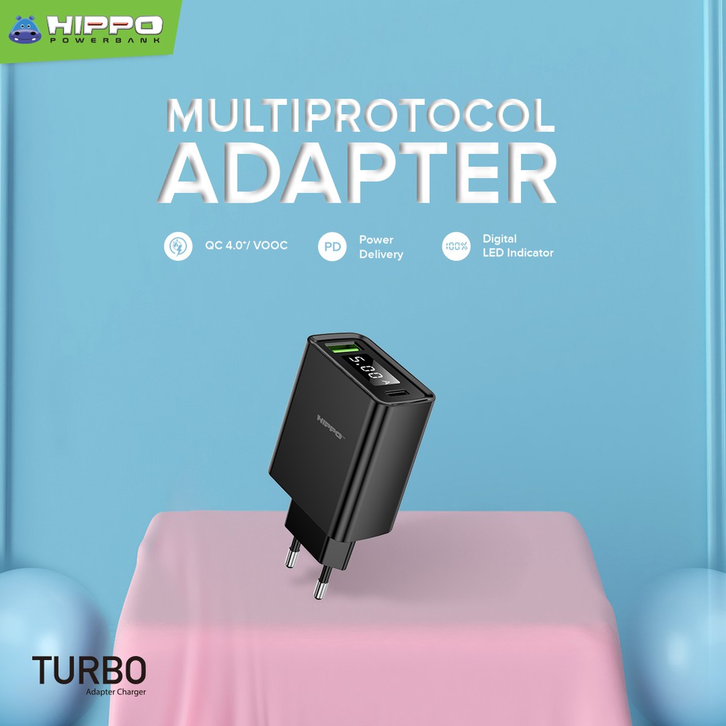 Hippo Adapter Turbo PD Quick Charging 4.0 VOOC + Power Delivery 18W + Digital LED Indicator