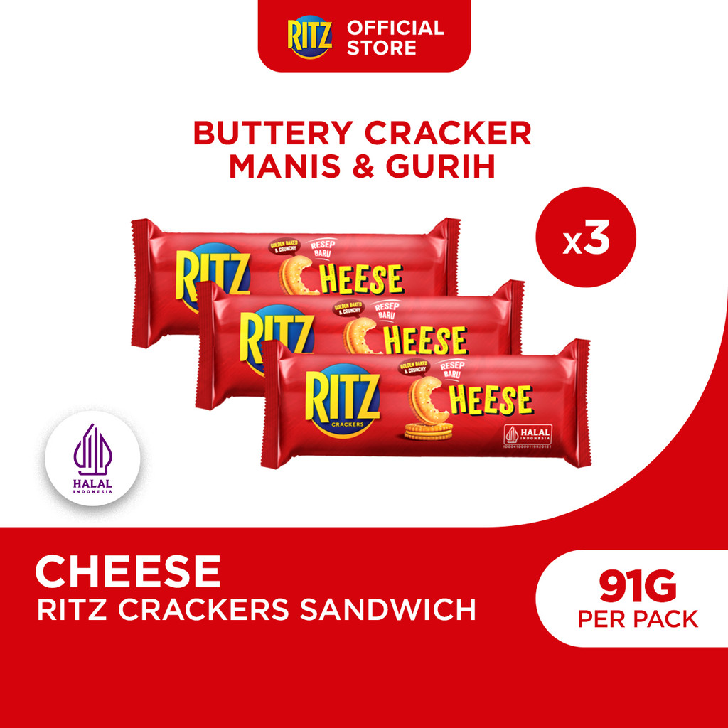 Ritz Crackers Cheese 91g (Paket isi 3), Crackers dengan Krim Rasa Keju