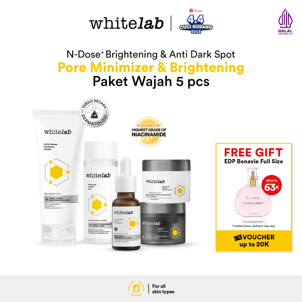 Whitelab Paket Wajah Brightening Niacinamide Facial Wash, Toner, Serum, Day & Night Moisturizer - 5 pcs N-Dose+ 2.0 Skincare