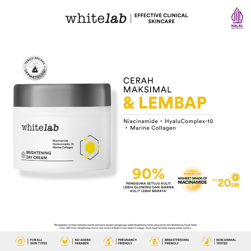 Whitelab Day Cream Brightening - Pelembap Krim Pagi Pencerah Wajah Untuk Kulit Oily N-Dose+ 2.0