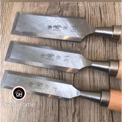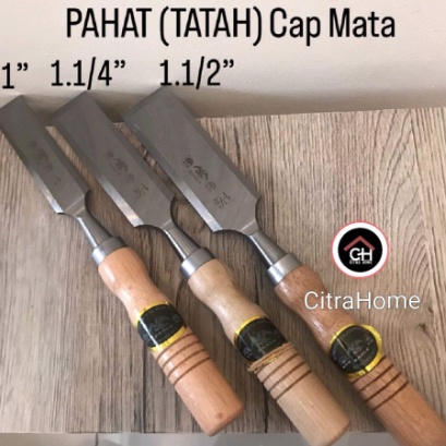 Pahat / Tatah Pegangan Kayu Cap Mata 3 Ukuran