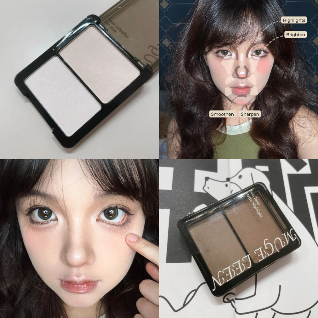 MUGELEEN TWO TONE Highlight & Contour Matte Palette Waterproof Highlight Powder Make up Waterproof 7,4Gr