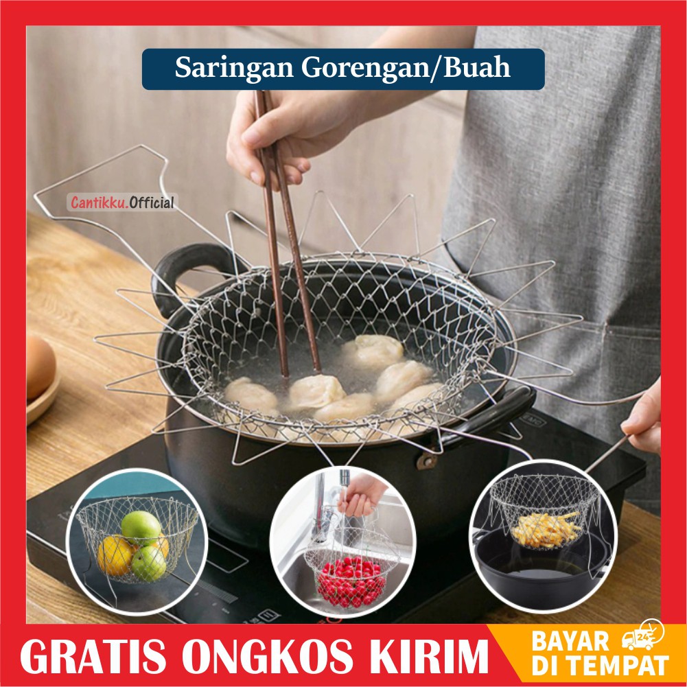 [COD] Jepitan Gorengan Saringan Keranjang Tatakan Peniris Rebus Minyak Goreng Sayur Stainless Steel