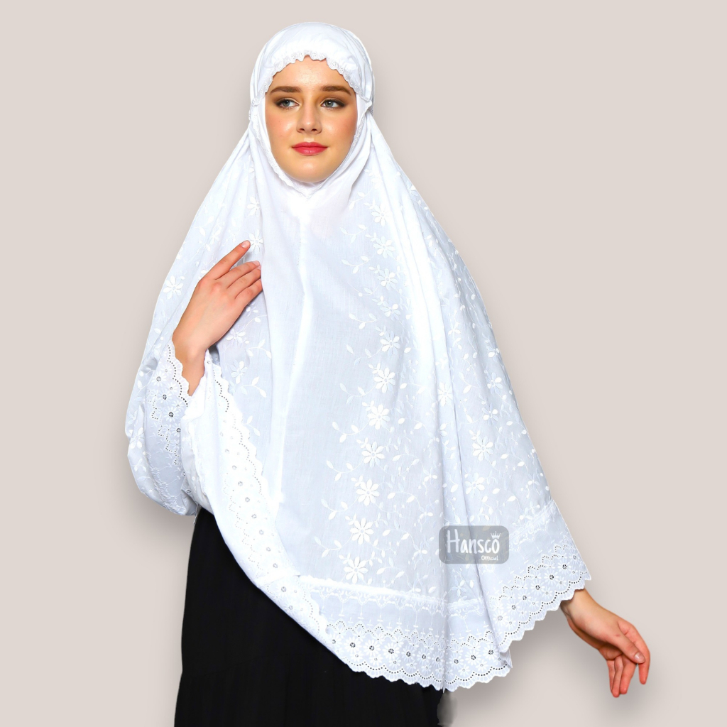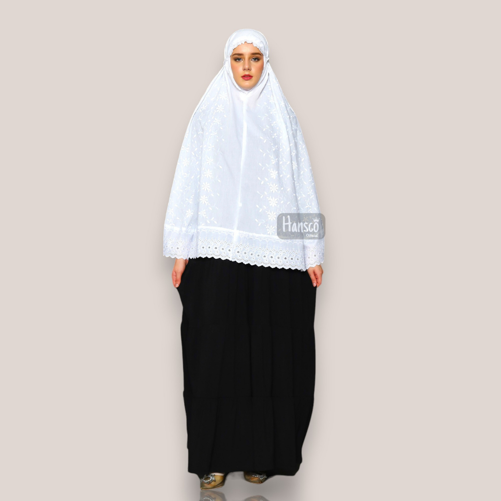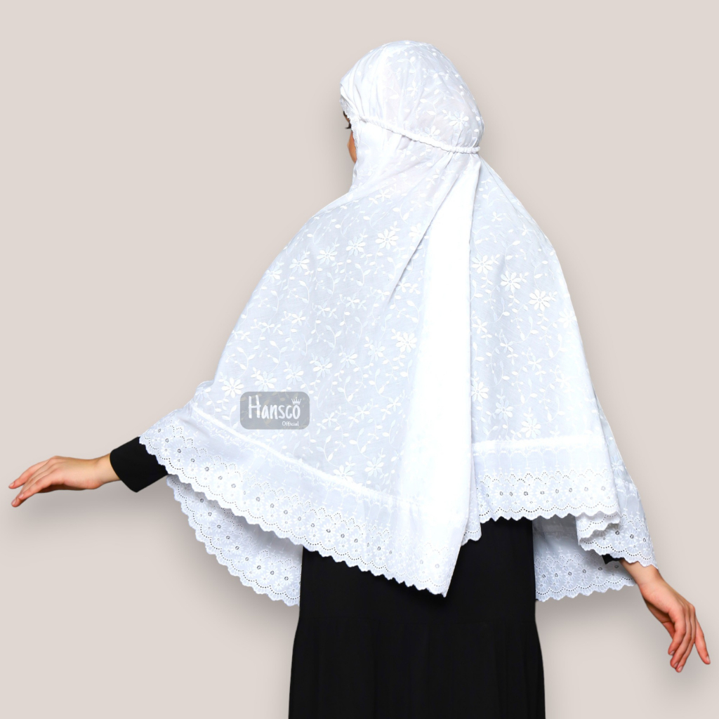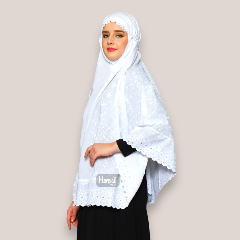 Bergo Jepang Umroh Renda Katun Super Jumbo Putih Perlengkapan Haji dan Umroh Wanita