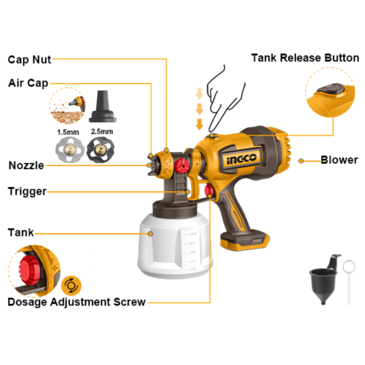 Cordless Paint Spray Gun 20V INGCO CSGLI20042 Mesin Semprot Cat Baterai P20S