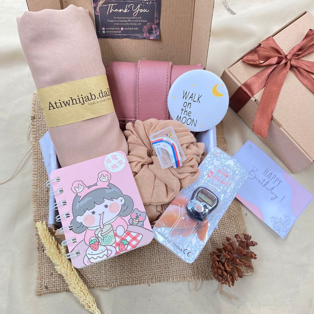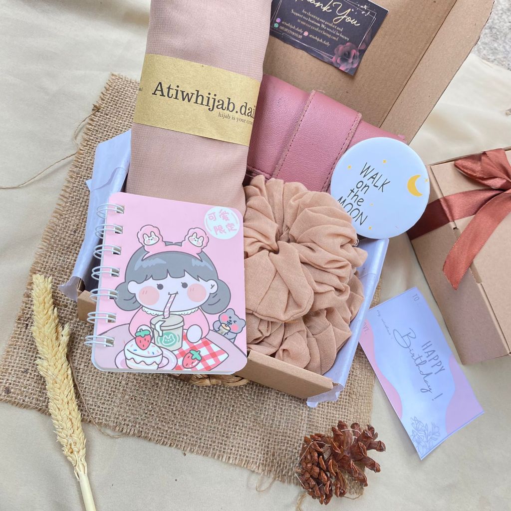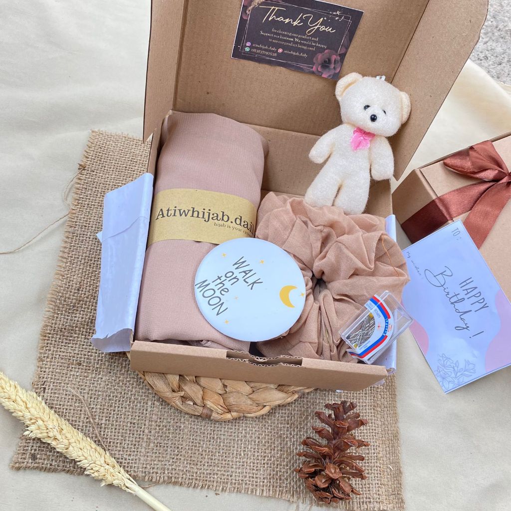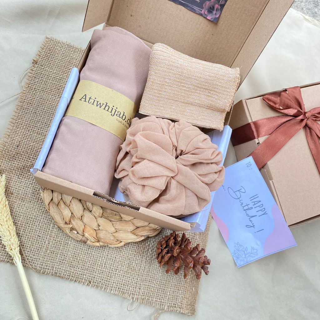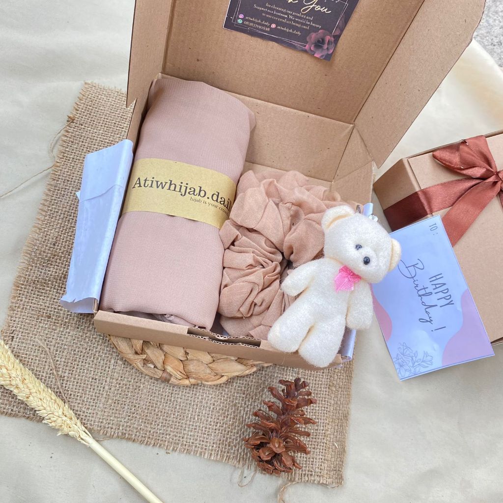 Hampers Hijab Bella Square / Gift Box Kado Ulang Tahun Cewek Murah Free Ucapan(Request Warna)