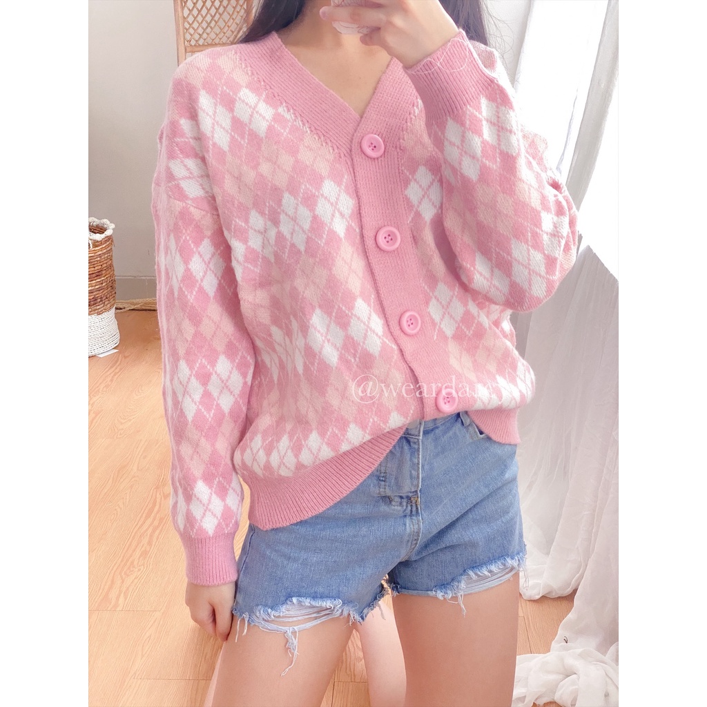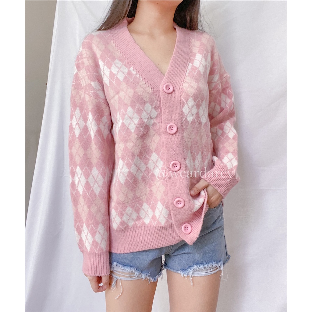 Weardarcy - MONRA Pink Argyle Cardigan