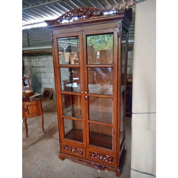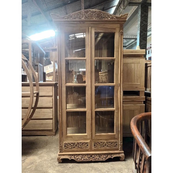 LEMARI KACA PALEMBANG UKIR JEPARA | BUFET LEMARI PALEMBANG KAYU JATI | LEMARI KACA PALEMBANG FURNITURE MEUBEL JEPARA