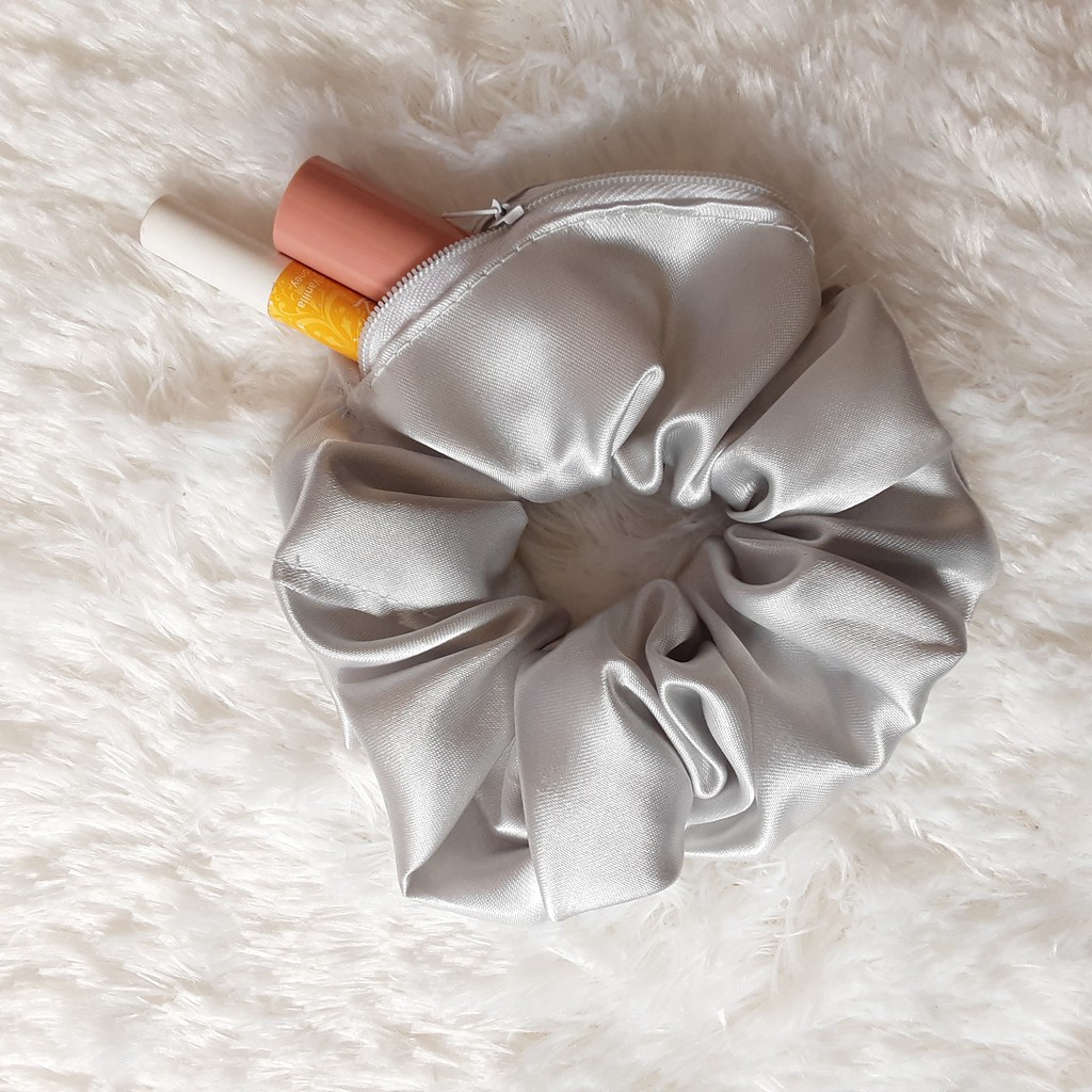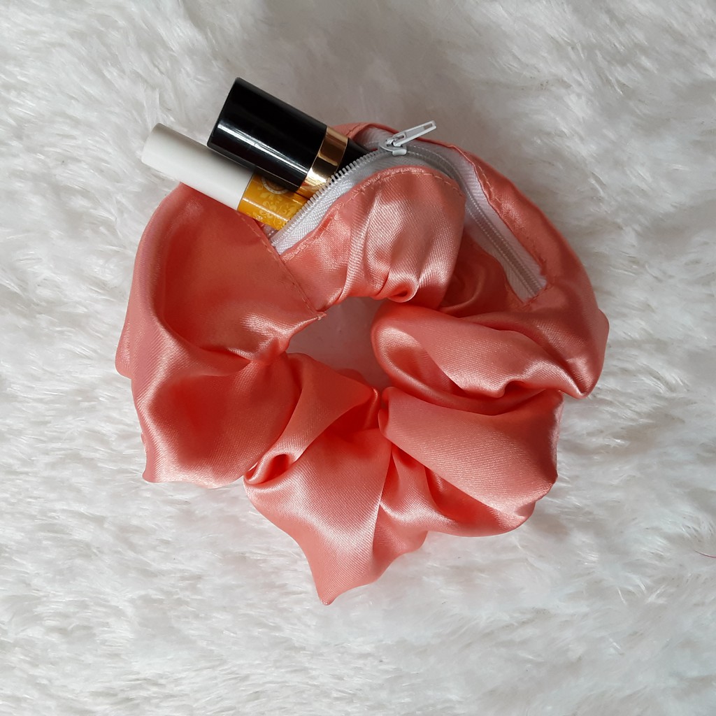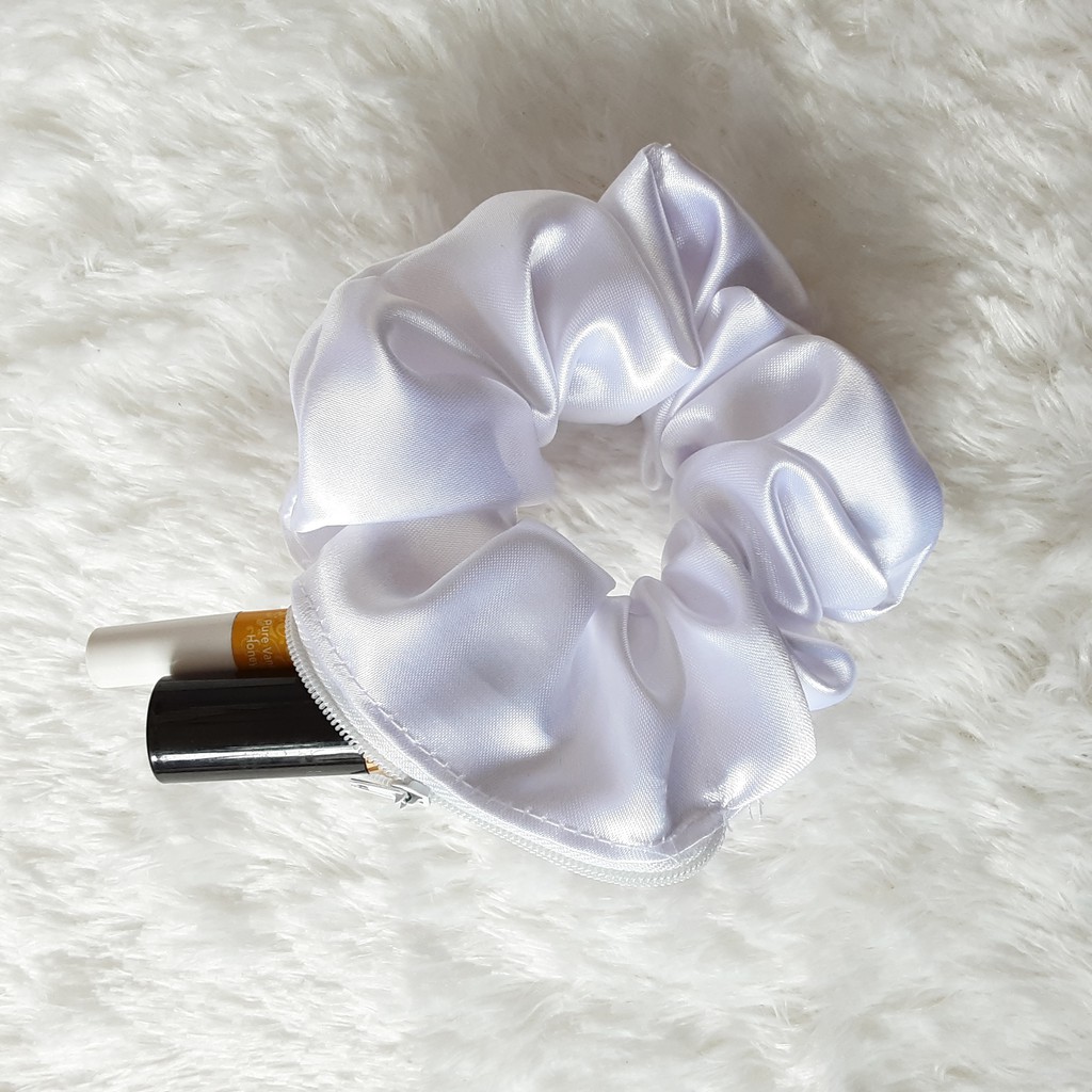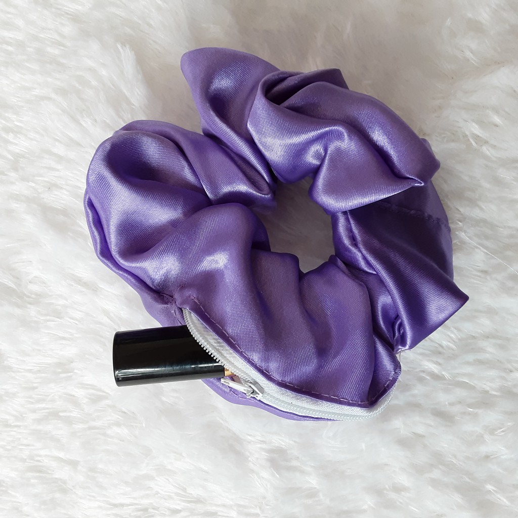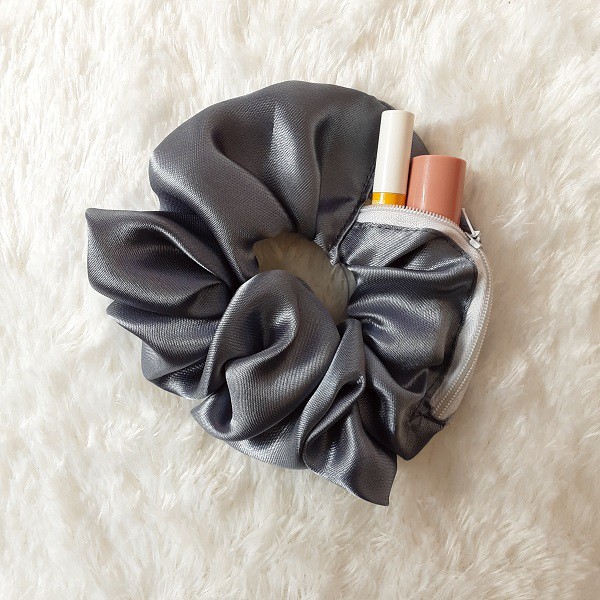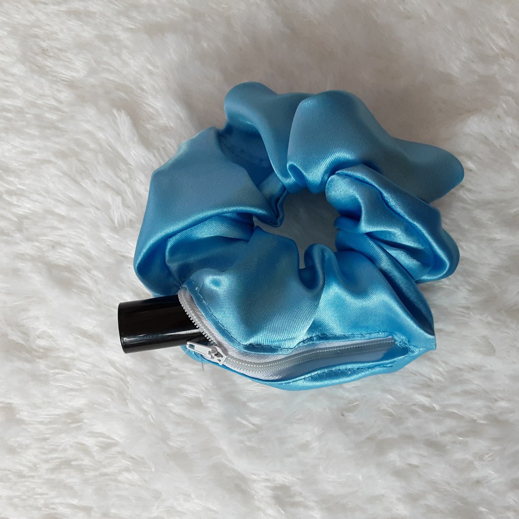 Scrunchie zipper satin silk srunchie resleting ikat rambut wanita cepol hijab