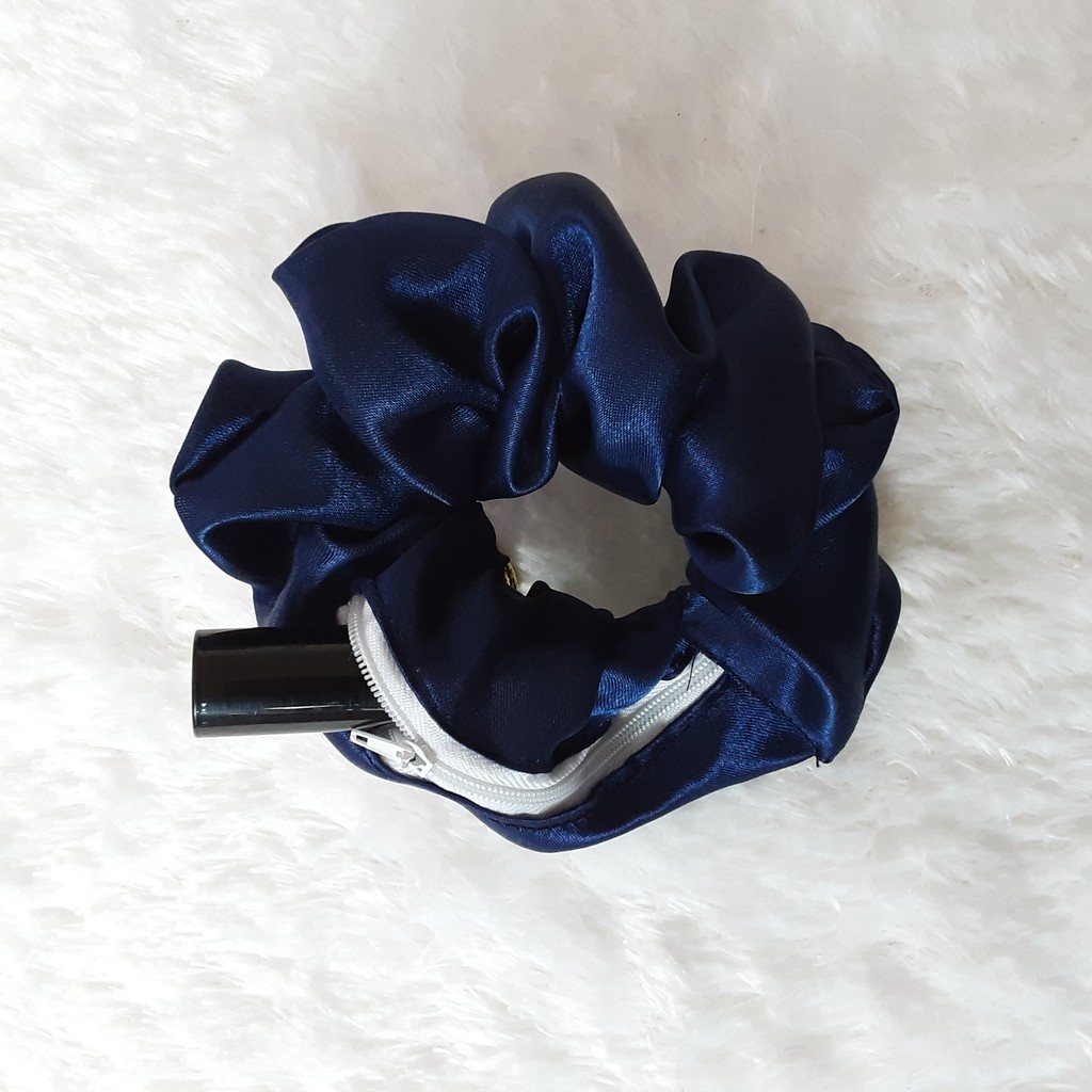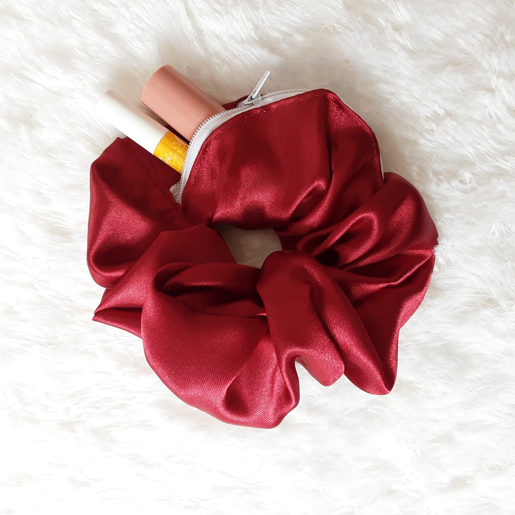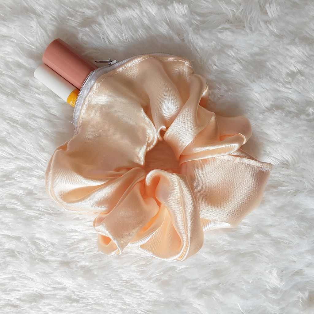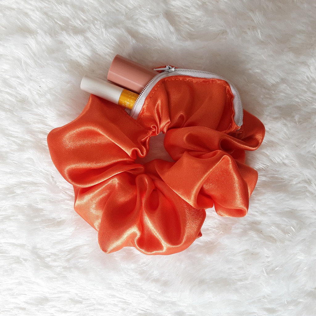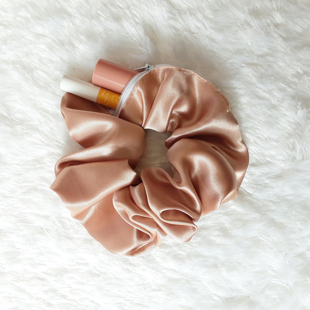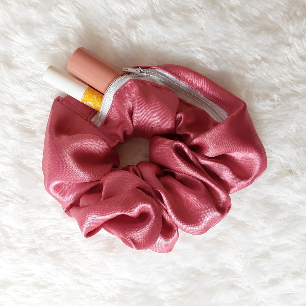 Scrunchie zipper satin silk srunchie resleting ikat rambut wanita cepol hijab