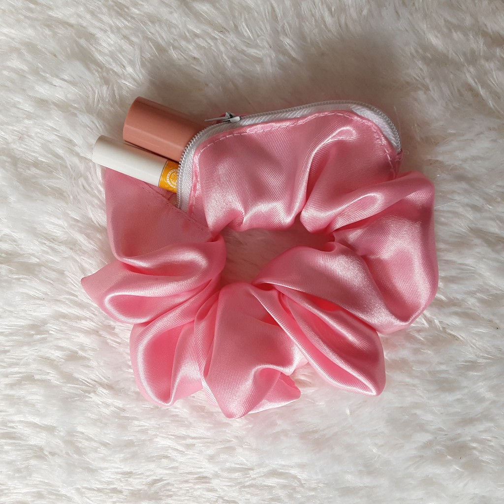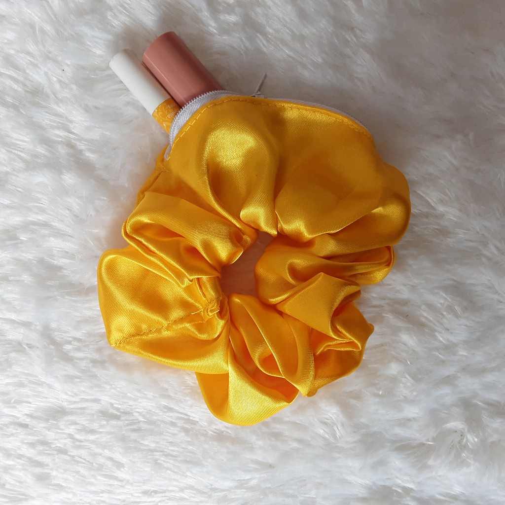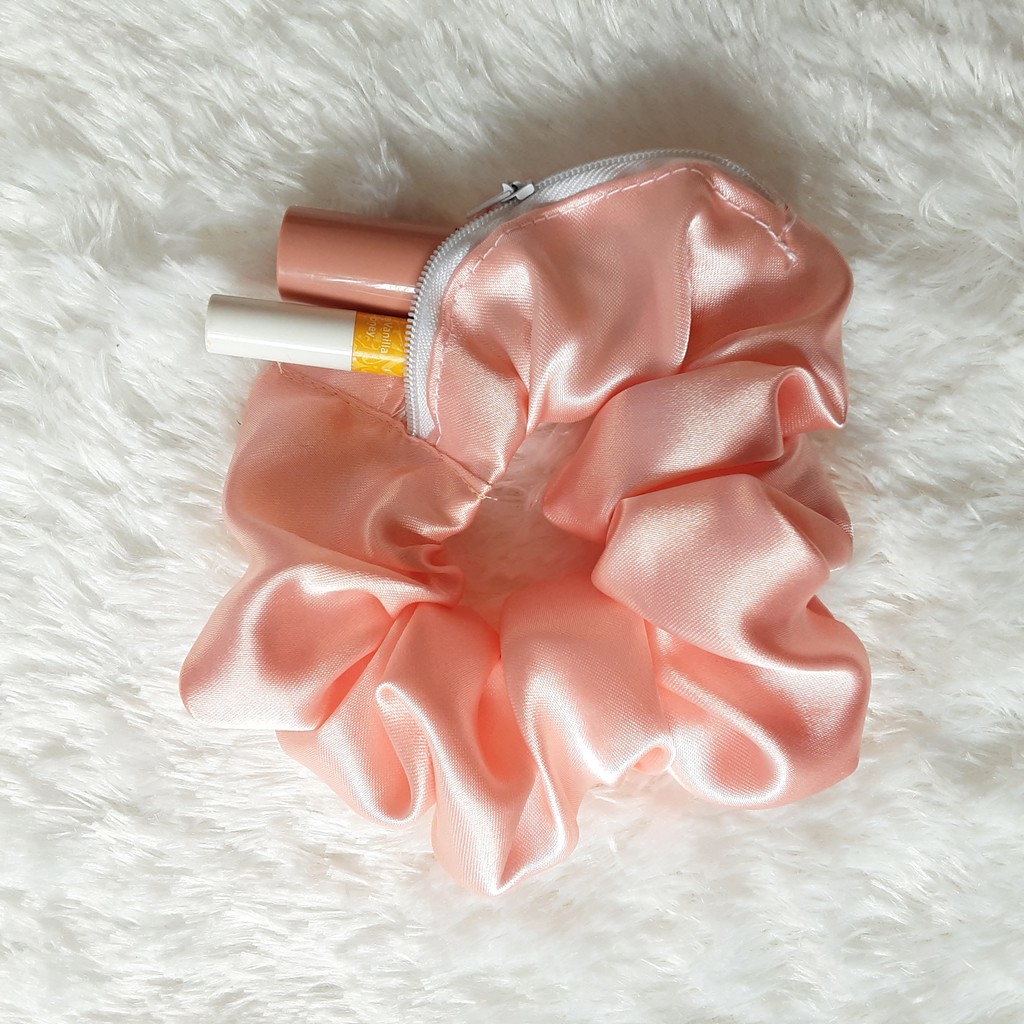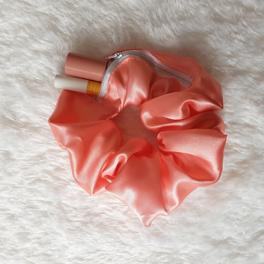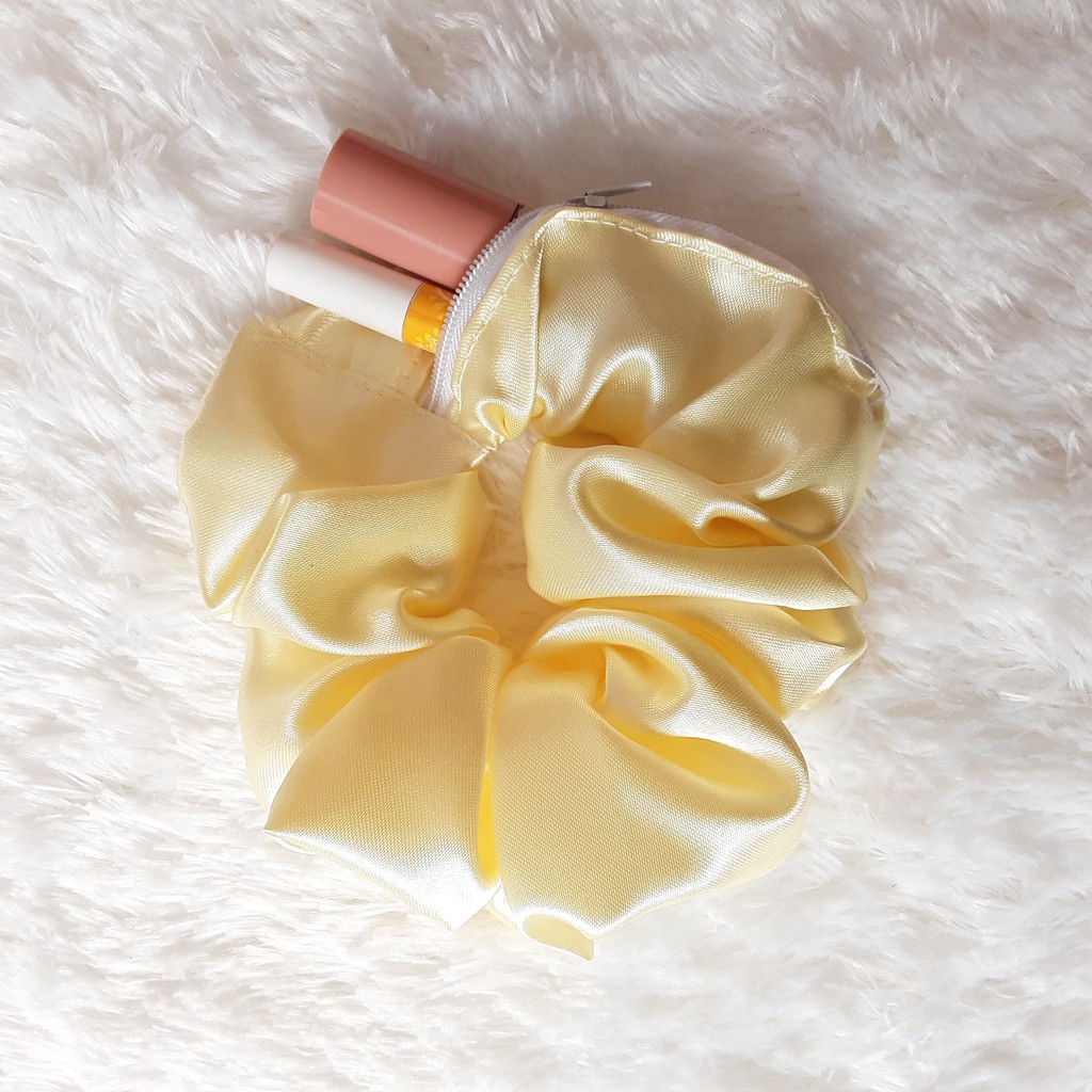Scrunchie zipper satin silk srunchie resleting ikat rambut wanita cepol hijab