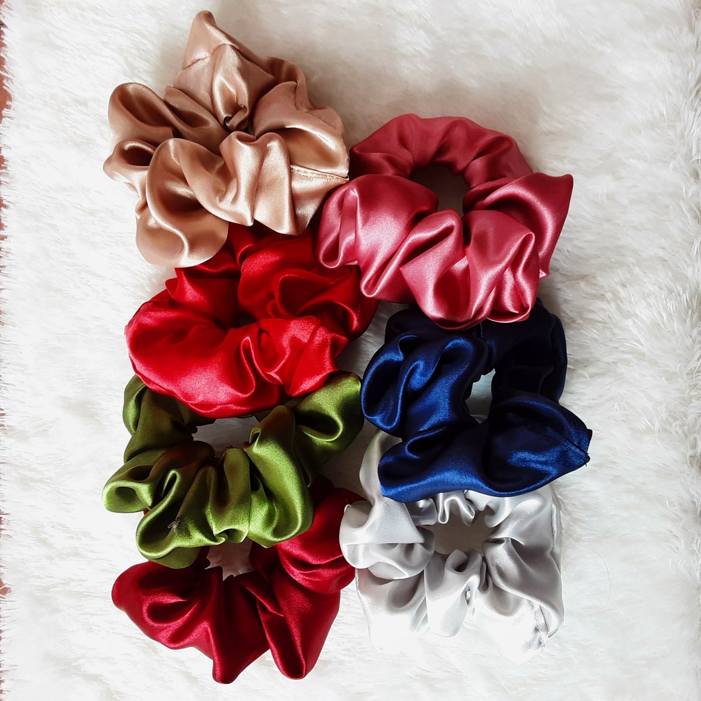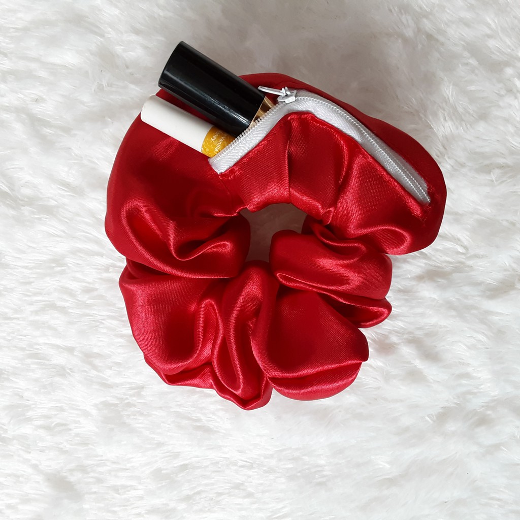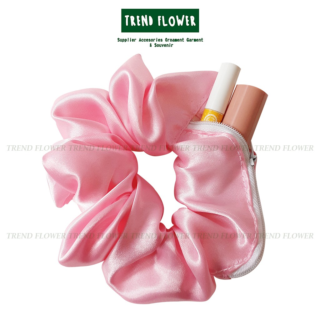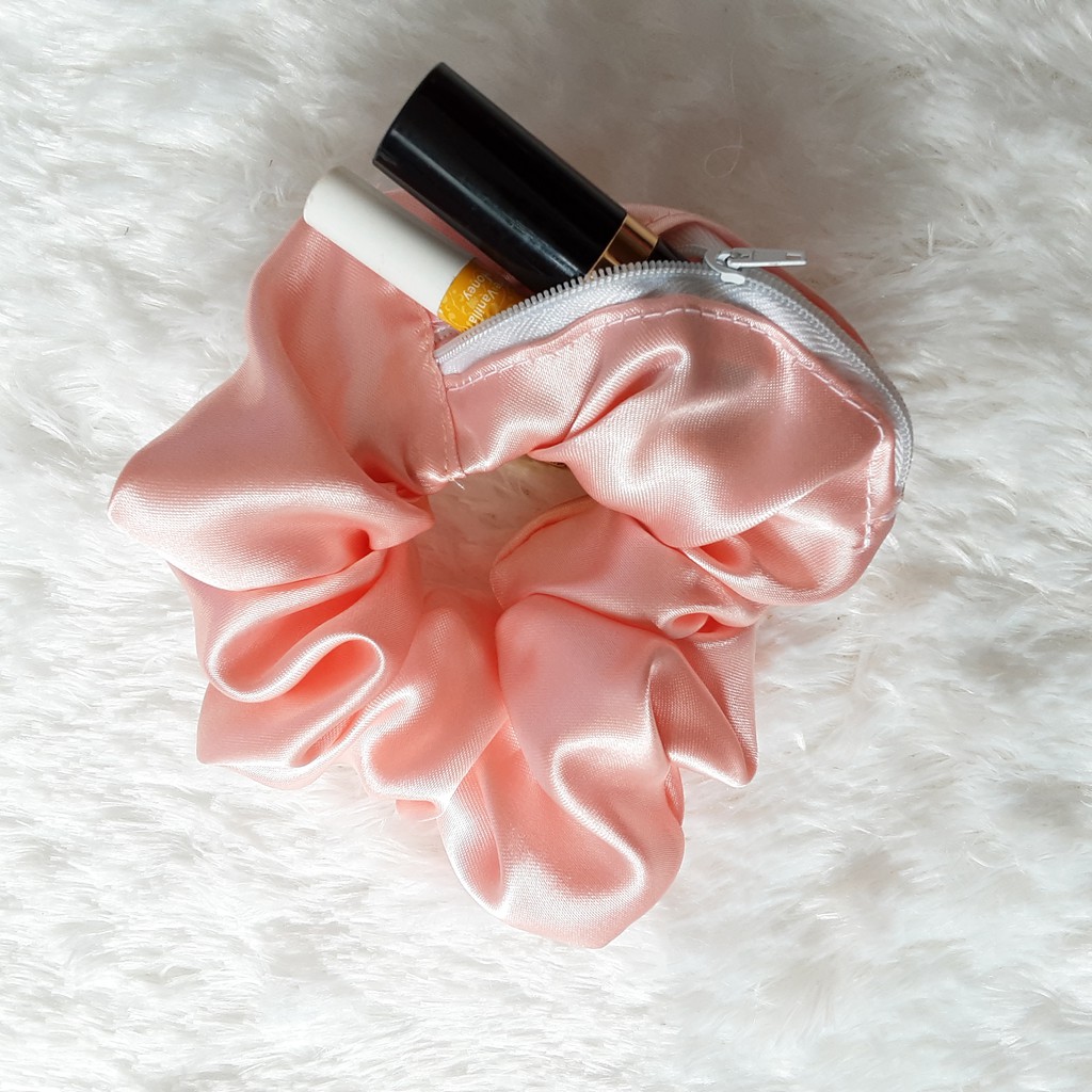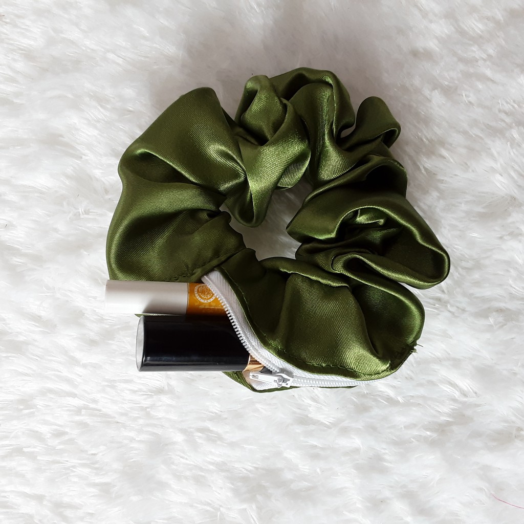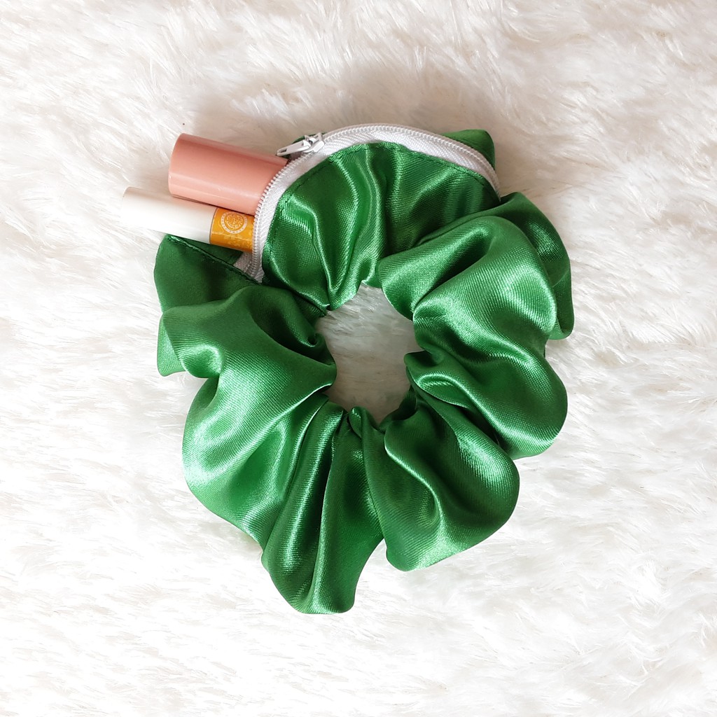 Scrunchie zipper satin silk srunchie resleting ikat rambut wanita cepol hijab