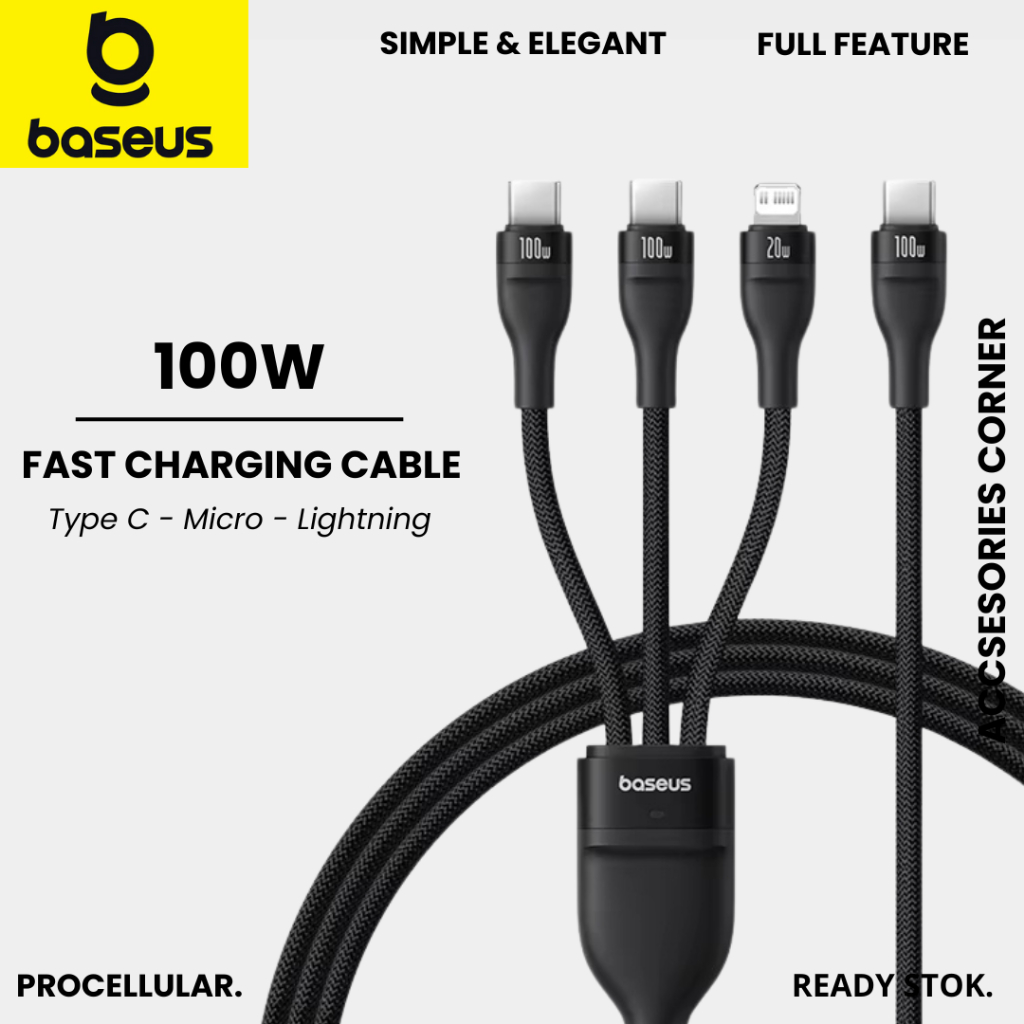 Baseus Kabel Cabang 3 in 1 Fast Charging Type C 100W Micro Lightning