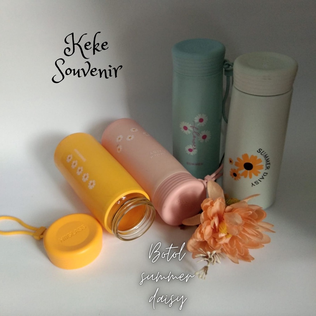 Grosir Souvenir Termurah 1 Pcs Botol Minum Kaca Summer Daissy Import Cantik