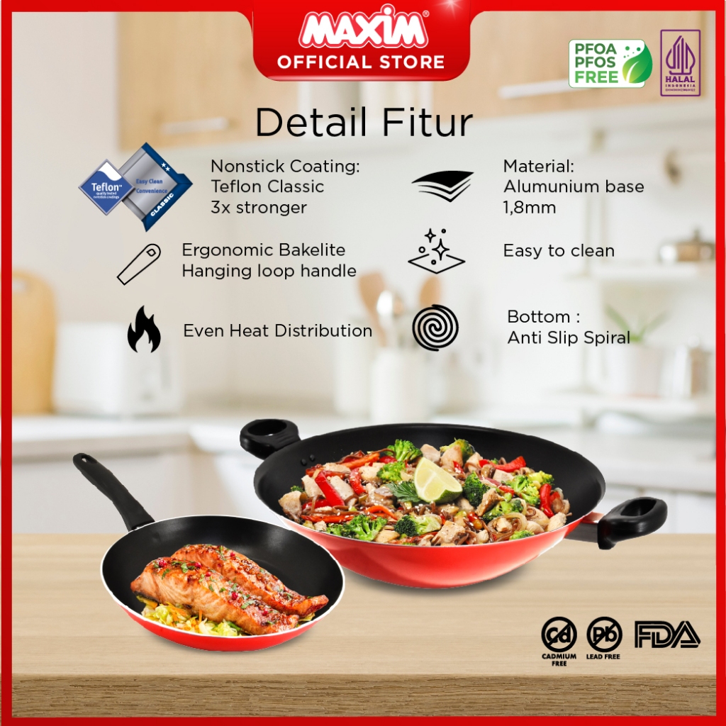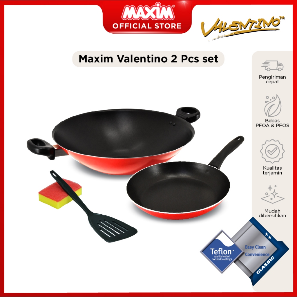 Maxim Valentino 2pcs Set Wajan Penggorengan Teflon Anti Lengket + Spatula + Sponge