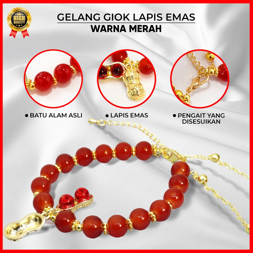 Wearmoura Gelang Giok Kacang Wanita Berlapis Emas 18K Anti Luntur