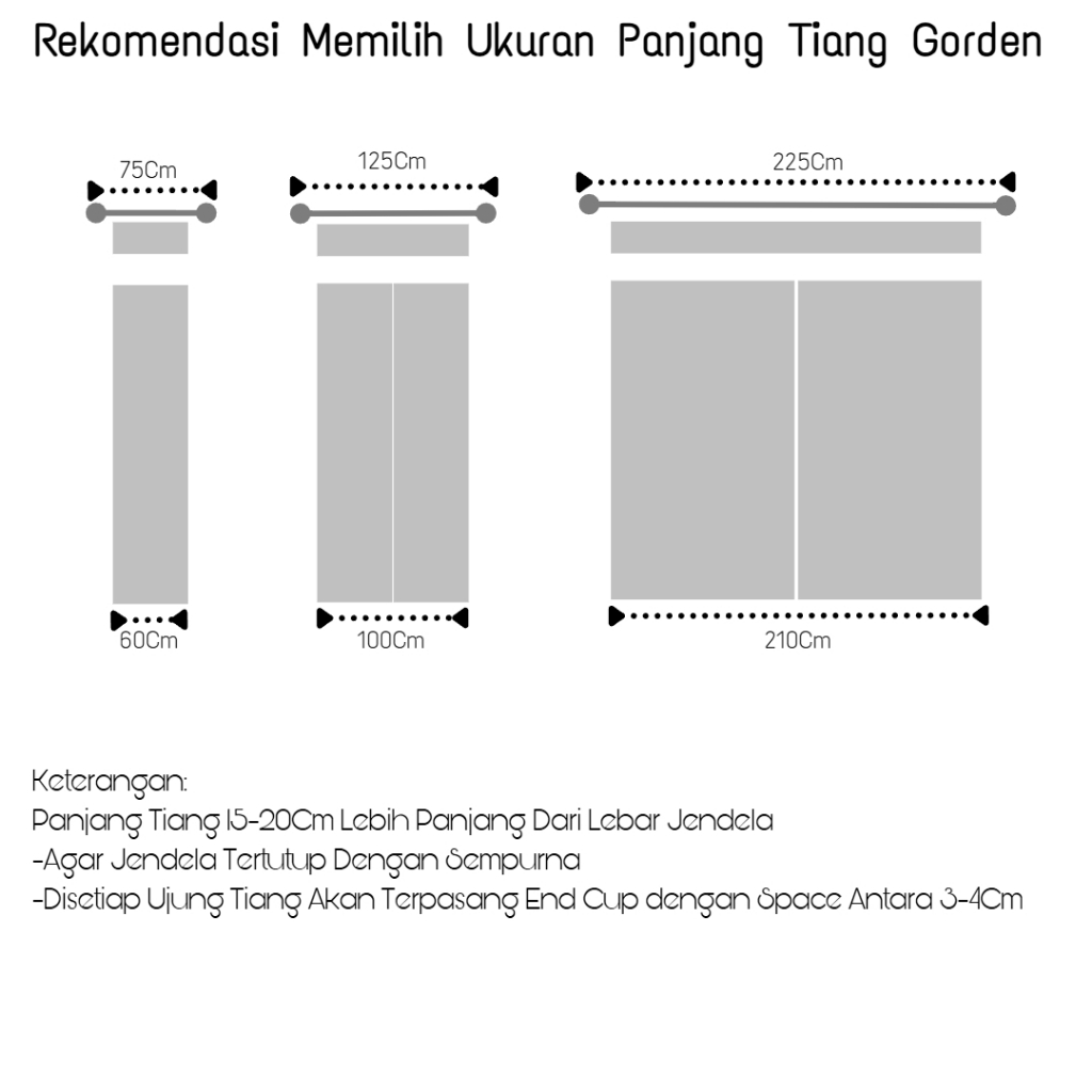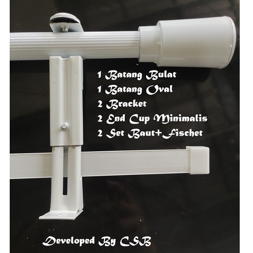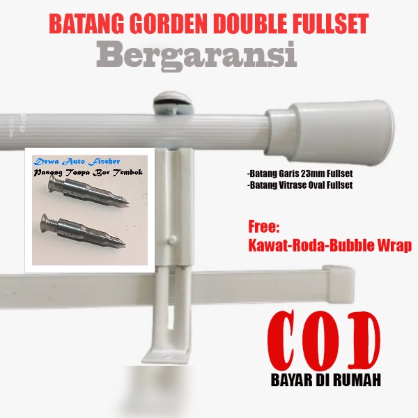 GARANSI RUSAK: Batang Tiang Besi Gorden Double Rel Vitrase Hitam Putih 1 2 2.5 3 4 Meter Full Set