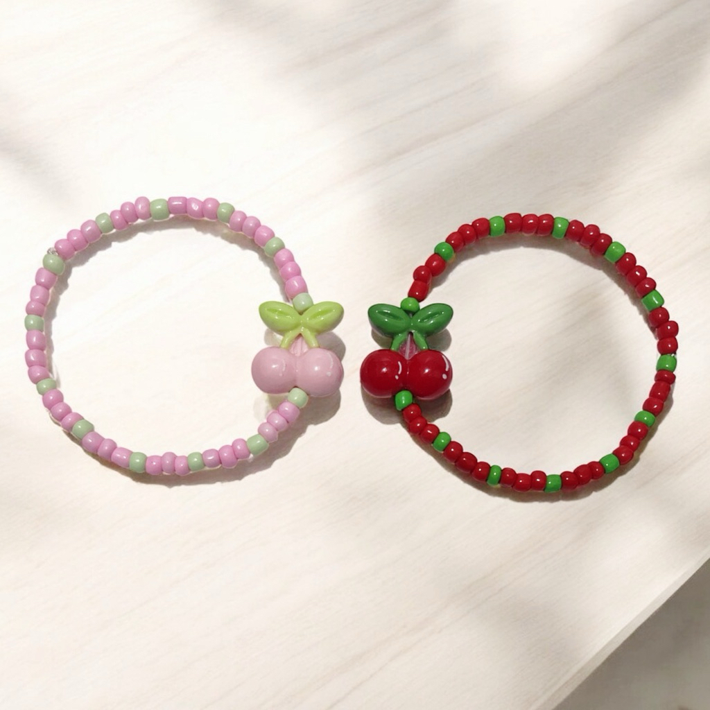 Cerisa Cherry Beads Bracelet Gelang Elastis Buah Ceri Manik Lucu