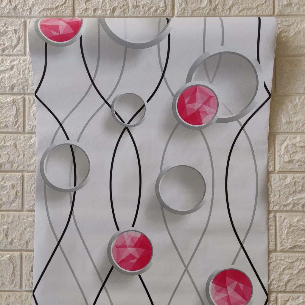 (COD) WALLPAPER STIKER 45cm x 8meter MOTIF SPIRAL BULAT MERAH READY