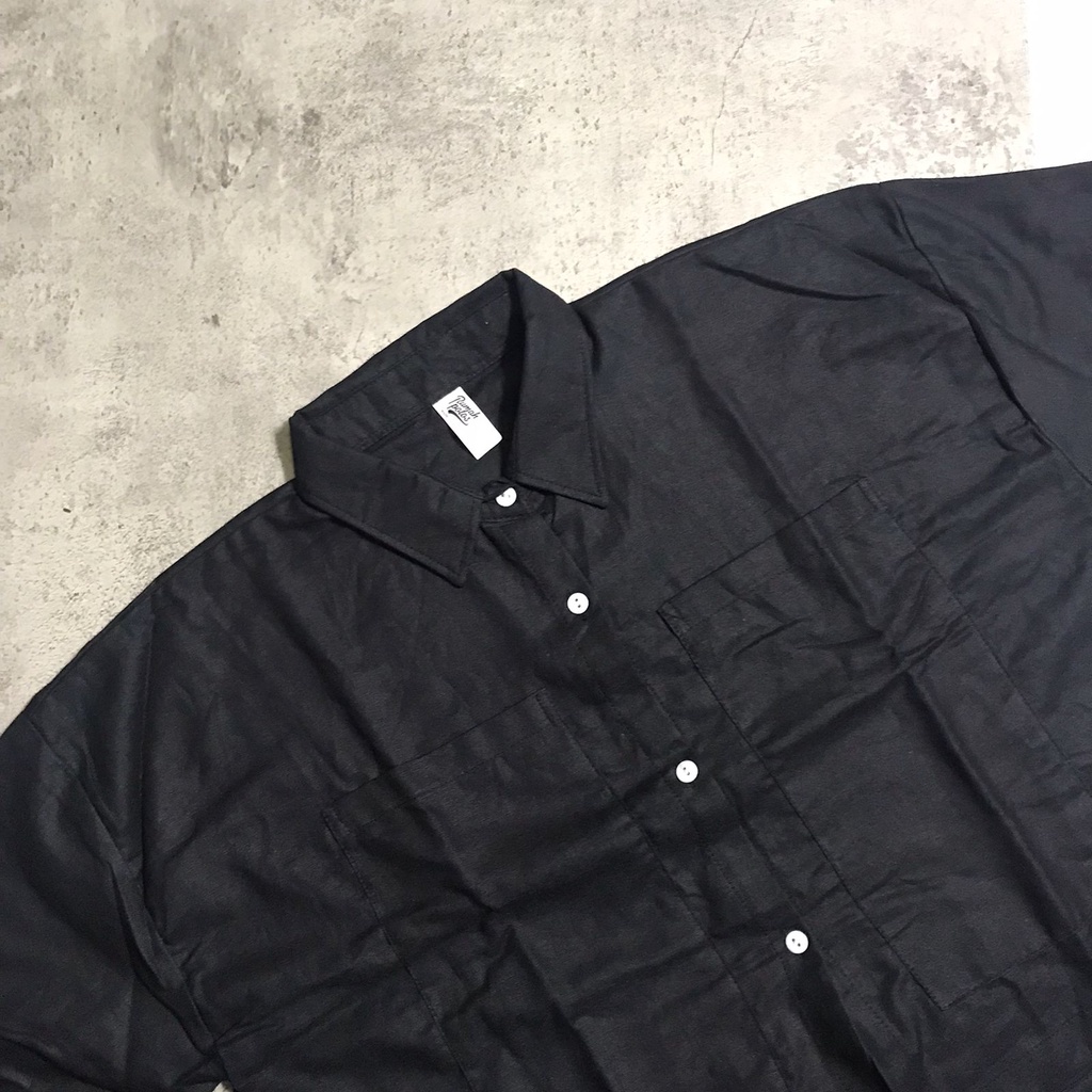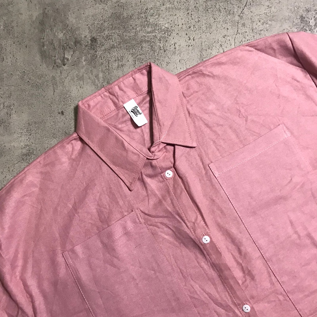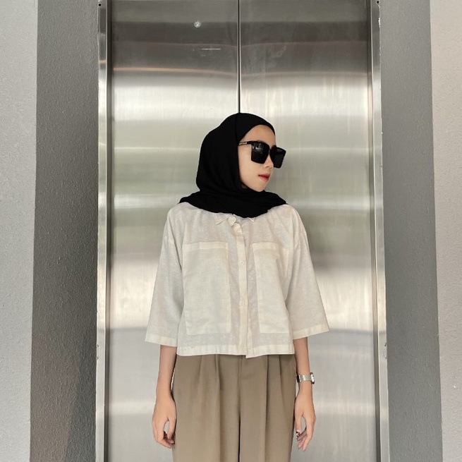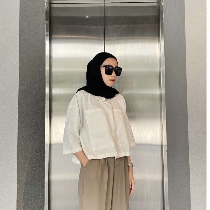 Rumah Polos Kemeja Crop Linen Pocket - Oversized Shirt Linen - Outer Crop Linen - Atasan Wanita