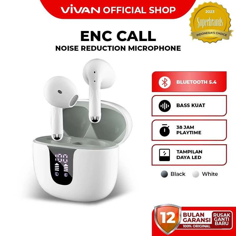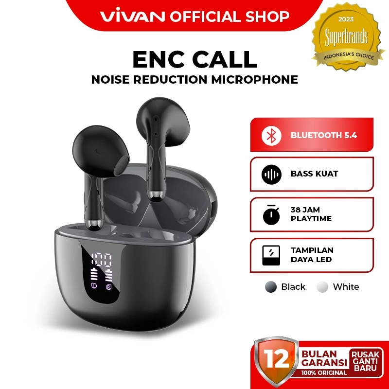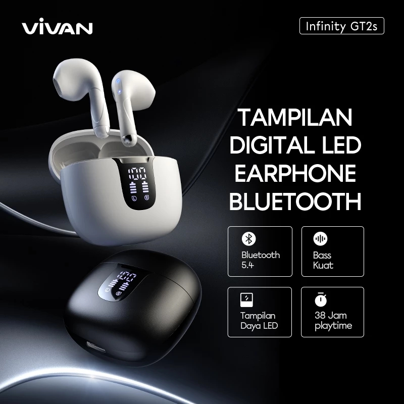 VIVAN Infinity GT2S TWS Headset Bluetooth 5.4 ENC True Wirelles LCD Display Extra Bass Garansi Resmi