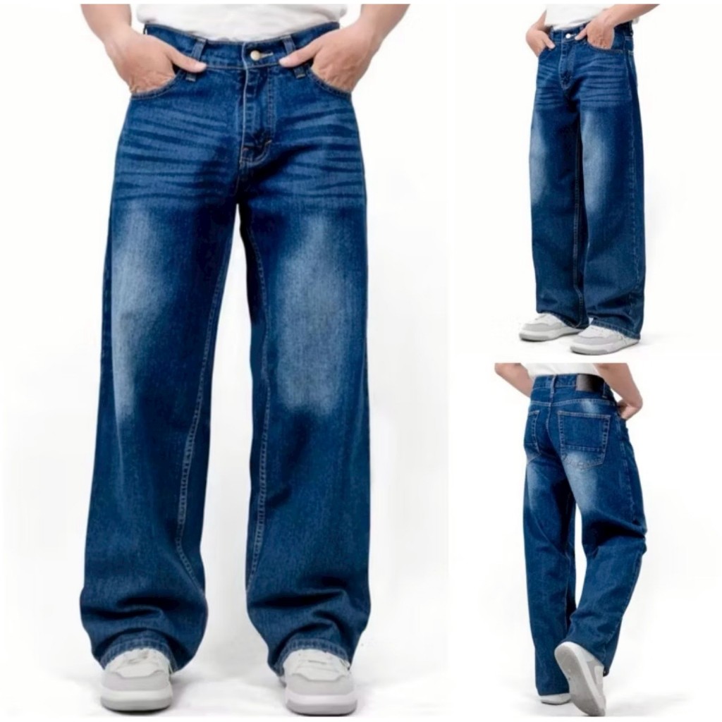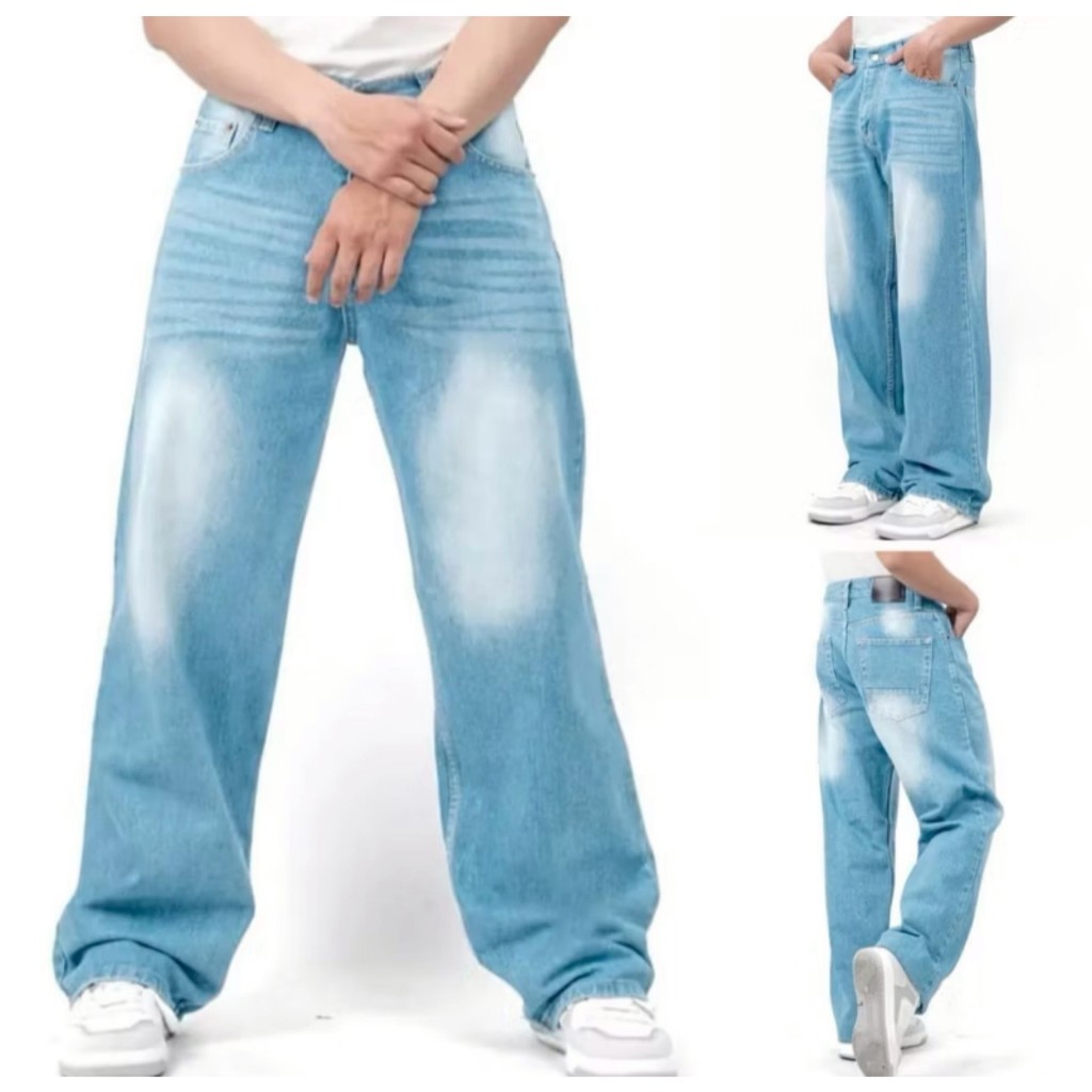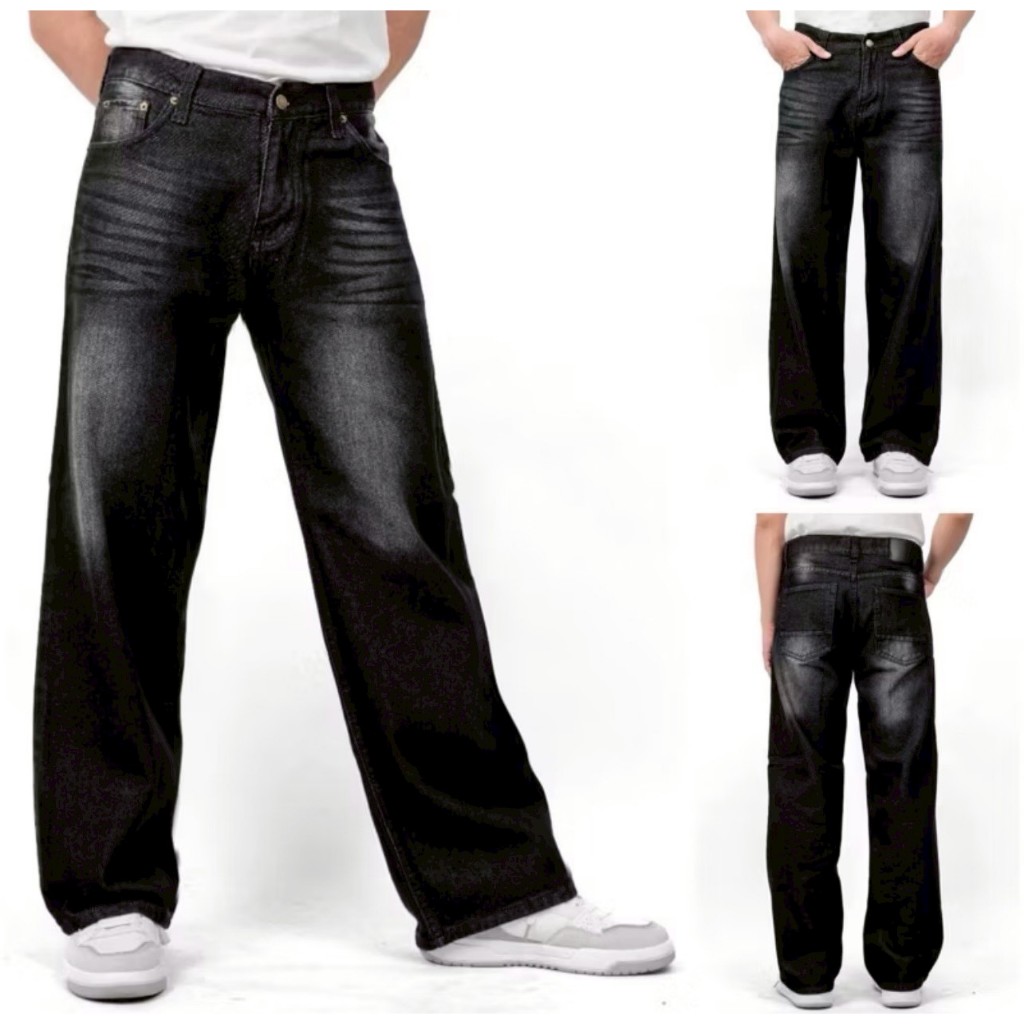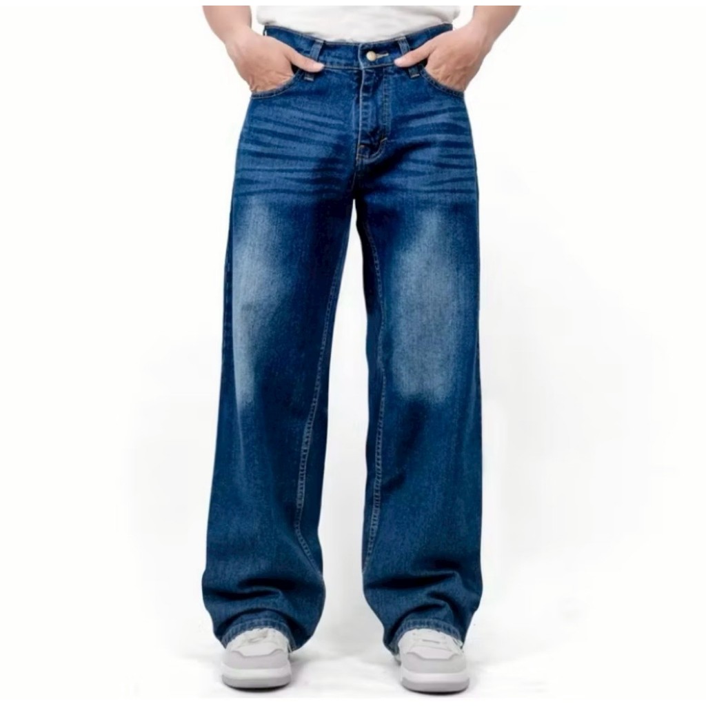 ALV27_ Celana Jeans Panjang Pria Koreanstyle Celana Losefit Wisker Retro/Beggy Jeans Pria Gombrang Skena Wide Leg