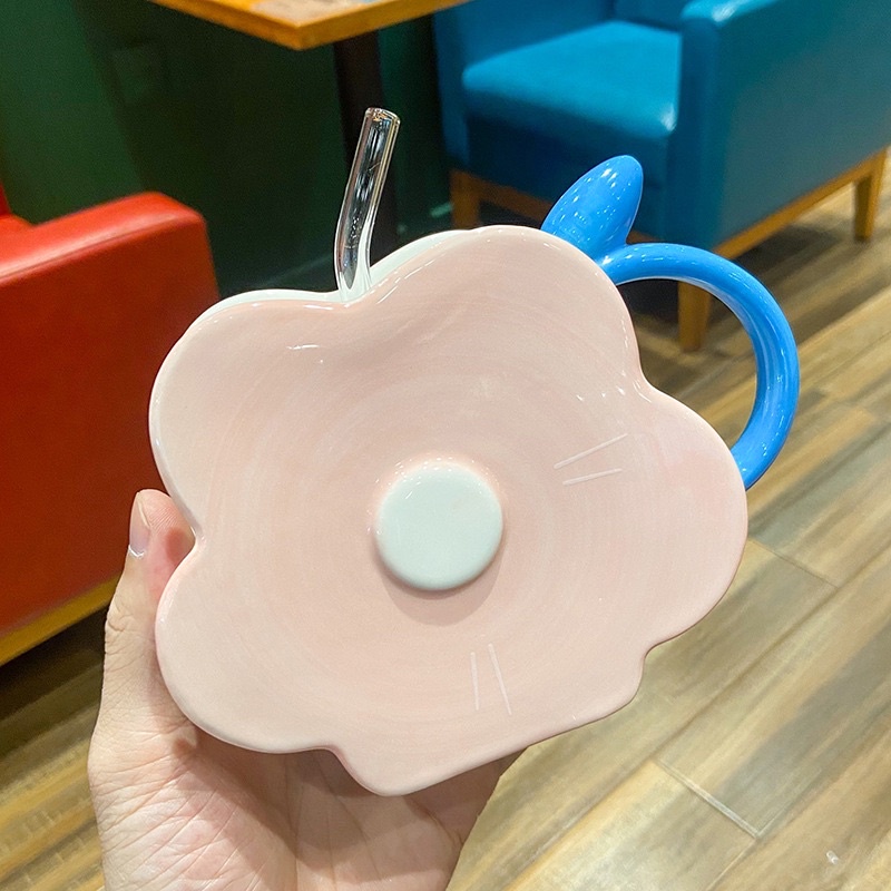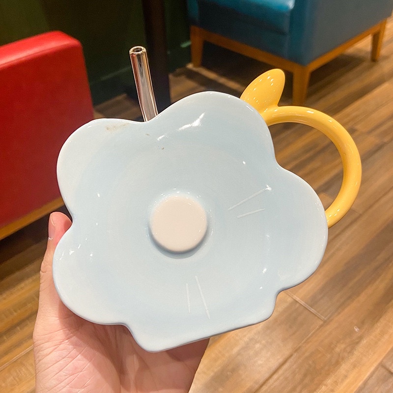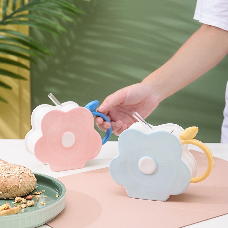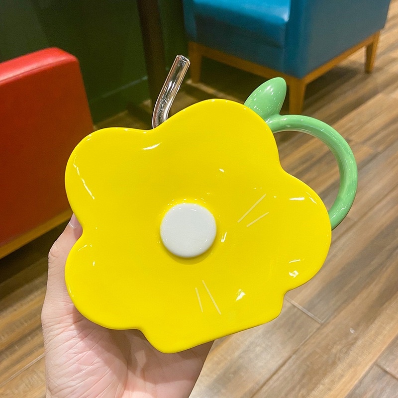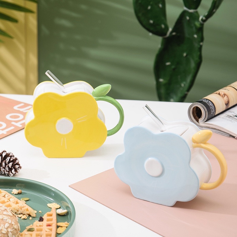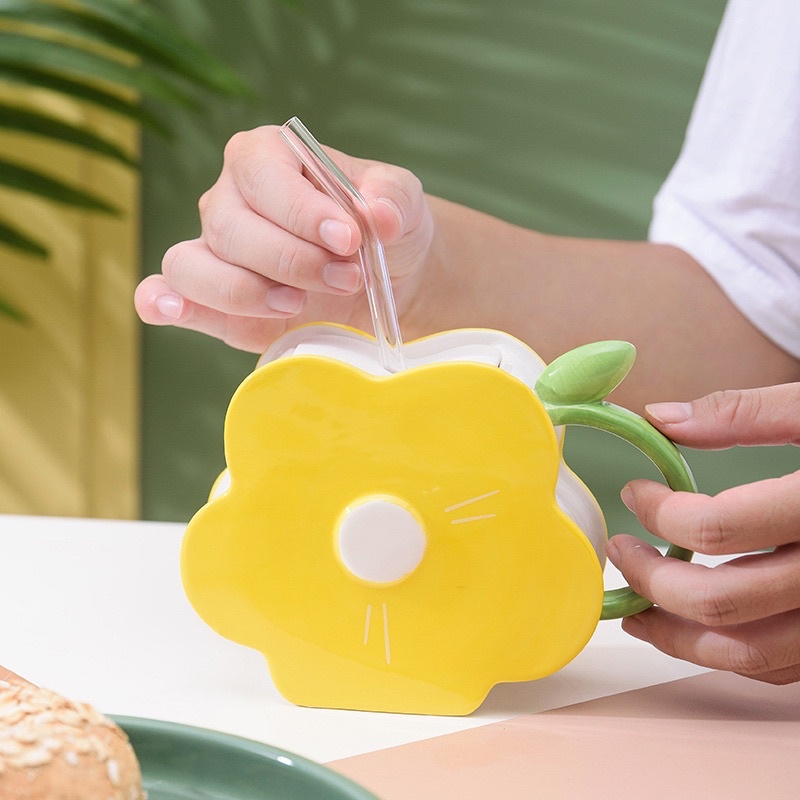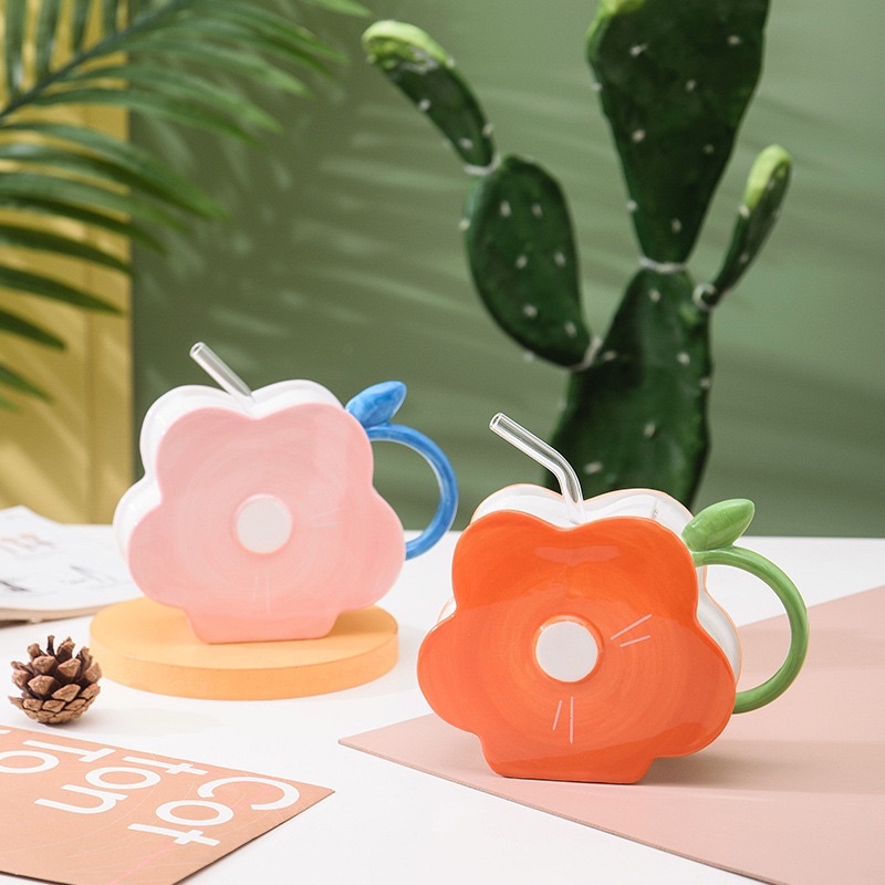 FLOWER CERAMIC MUG / GELAS BUNGA DENGAN TUTUPAN