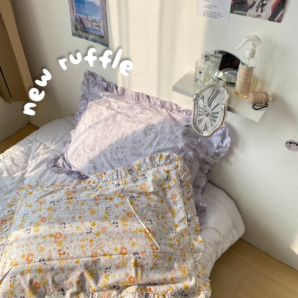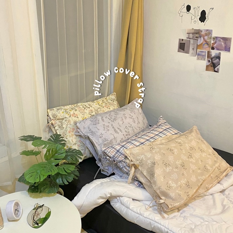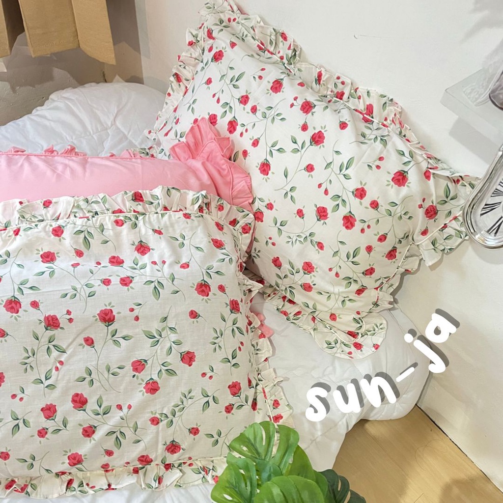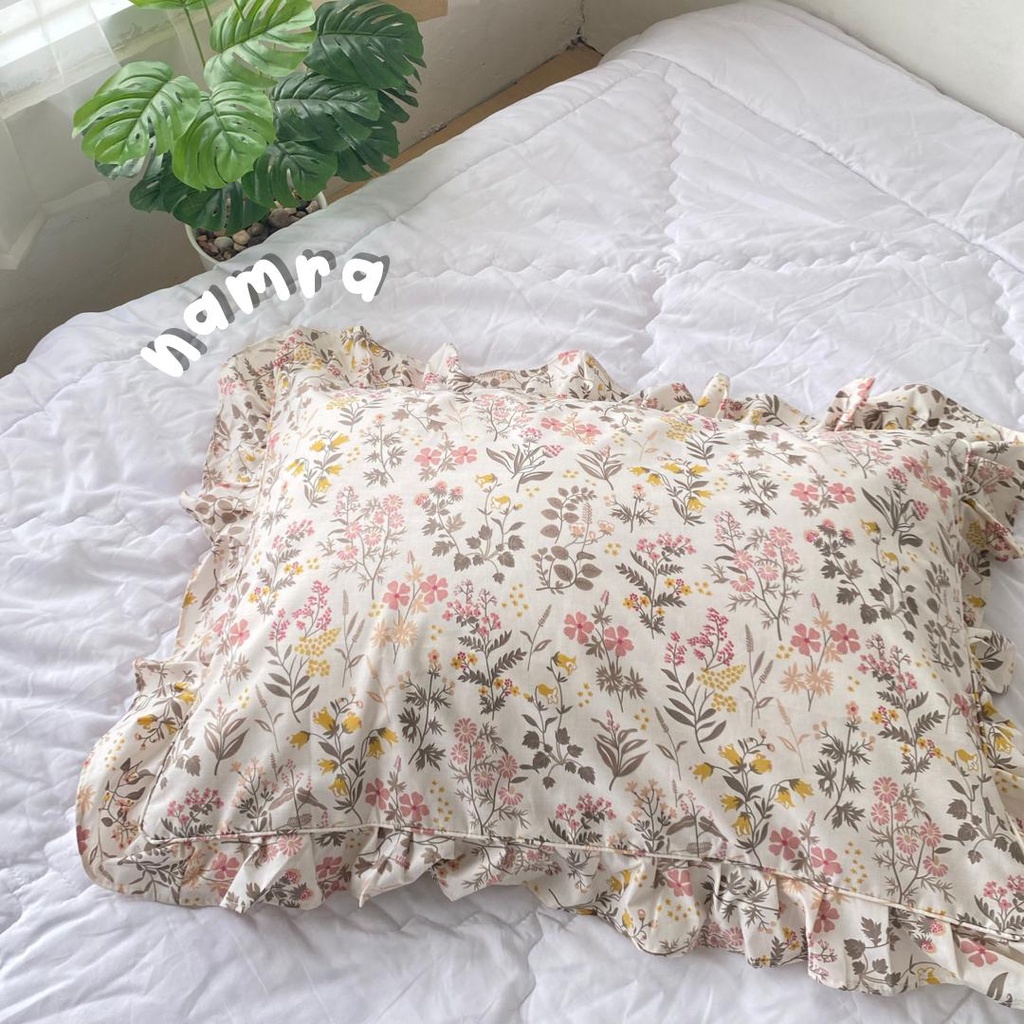 [@stigmable] Sarung Bantal Aesthetic Flower Floral ala Korea Pinterest Motif Bunga Pillow Cover Ruffle Rumbai Tali Strap Motif Vintage Floral Bunga