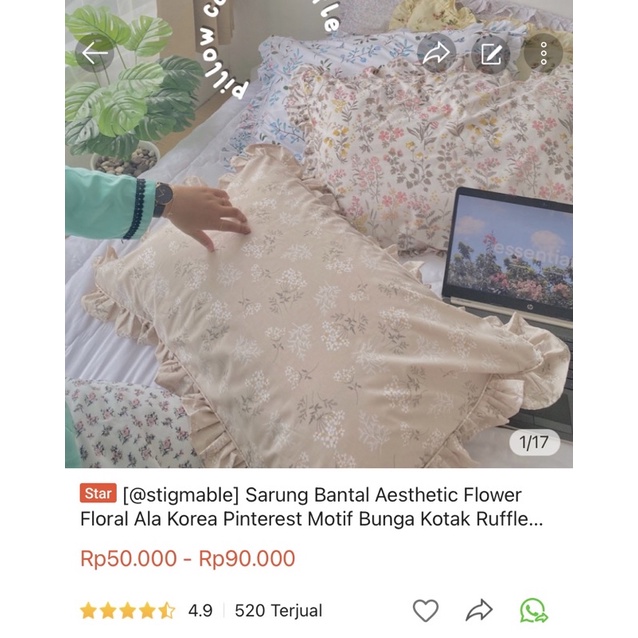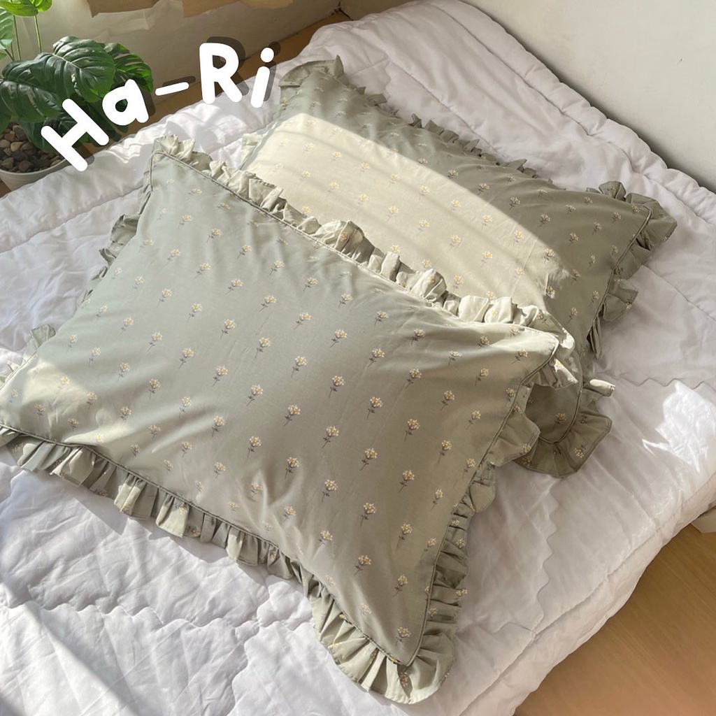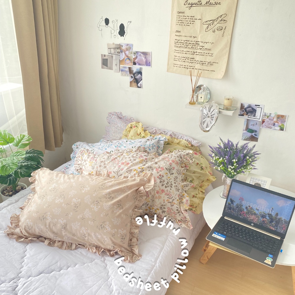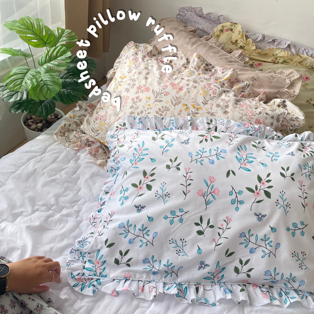 [@stigmable] Sarung Bantal Aesthetic Flower Floral ala Korea Pinterest Motif Bunga Pillow Cover Ruffle Rumbai Tali Strap Motif Vintage Floral Bunga