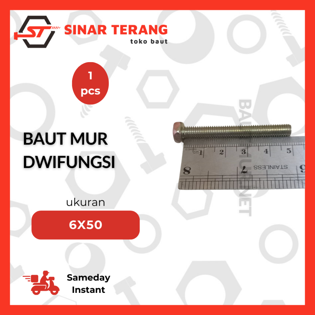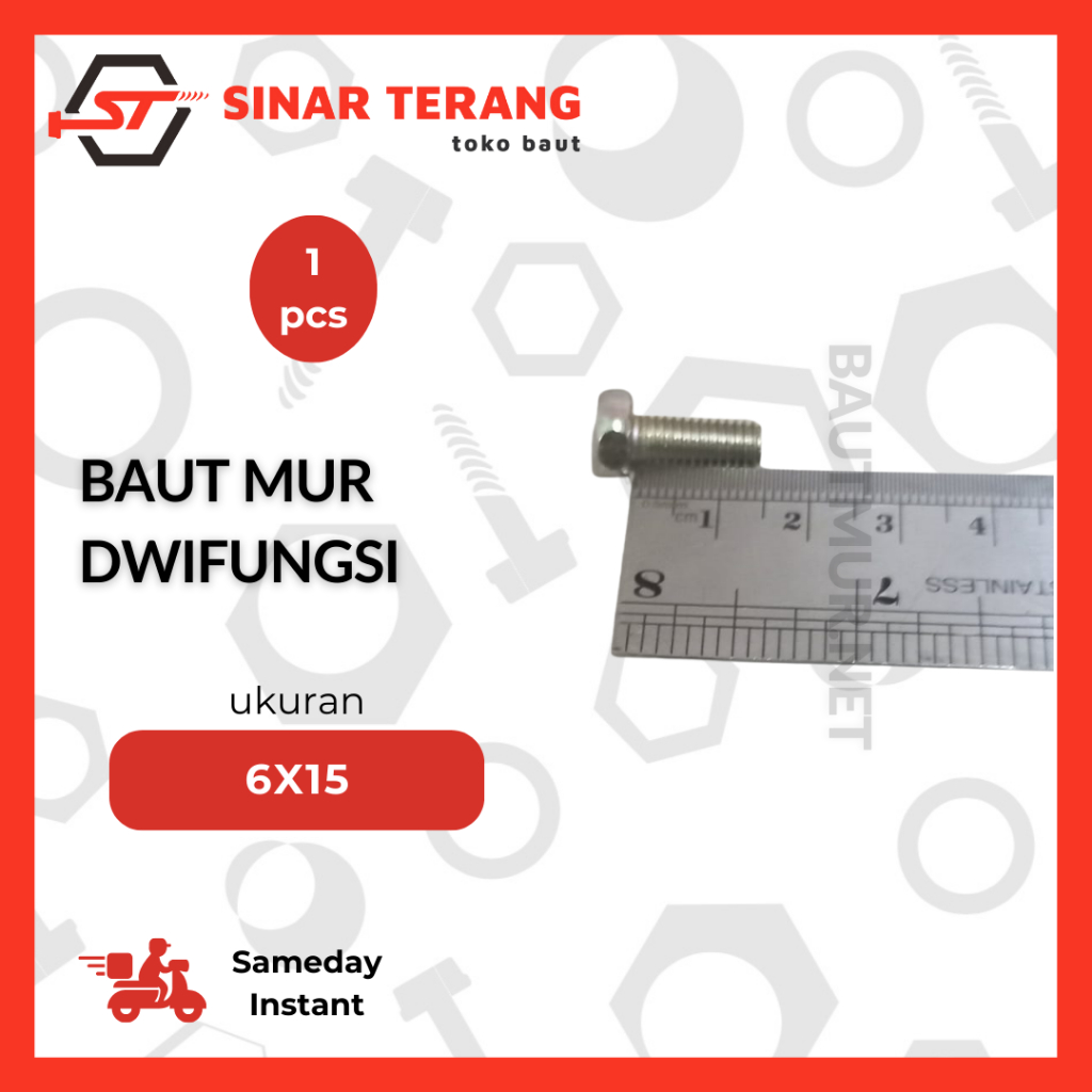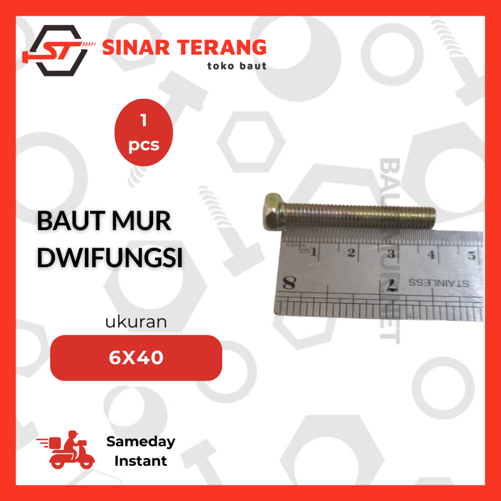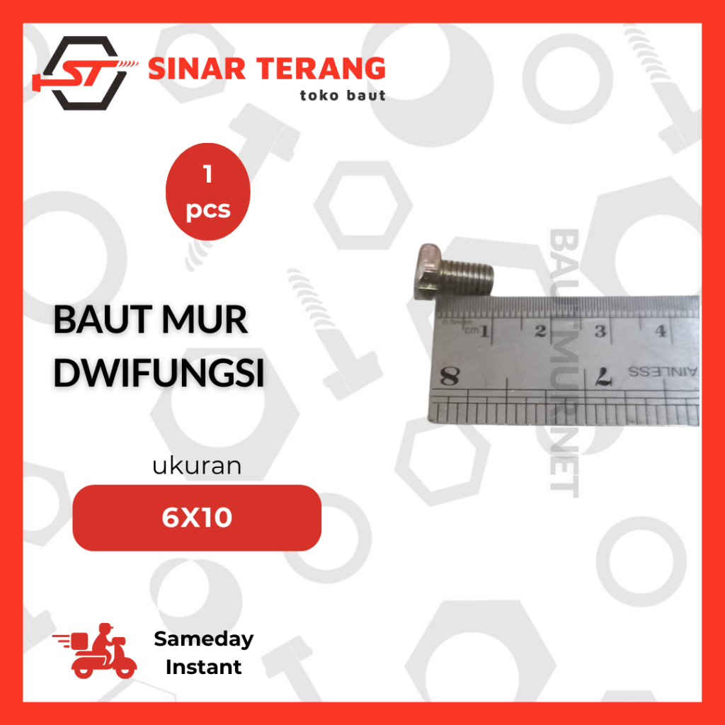 Baut Mur Dwifungsi M6 - Baut Mur Aki - Dwifungsi Kunci 10 - Baut Hexa Kuning