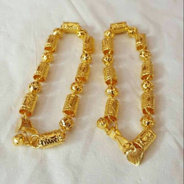 Gelang bambu bola ukir lapis emas 24k