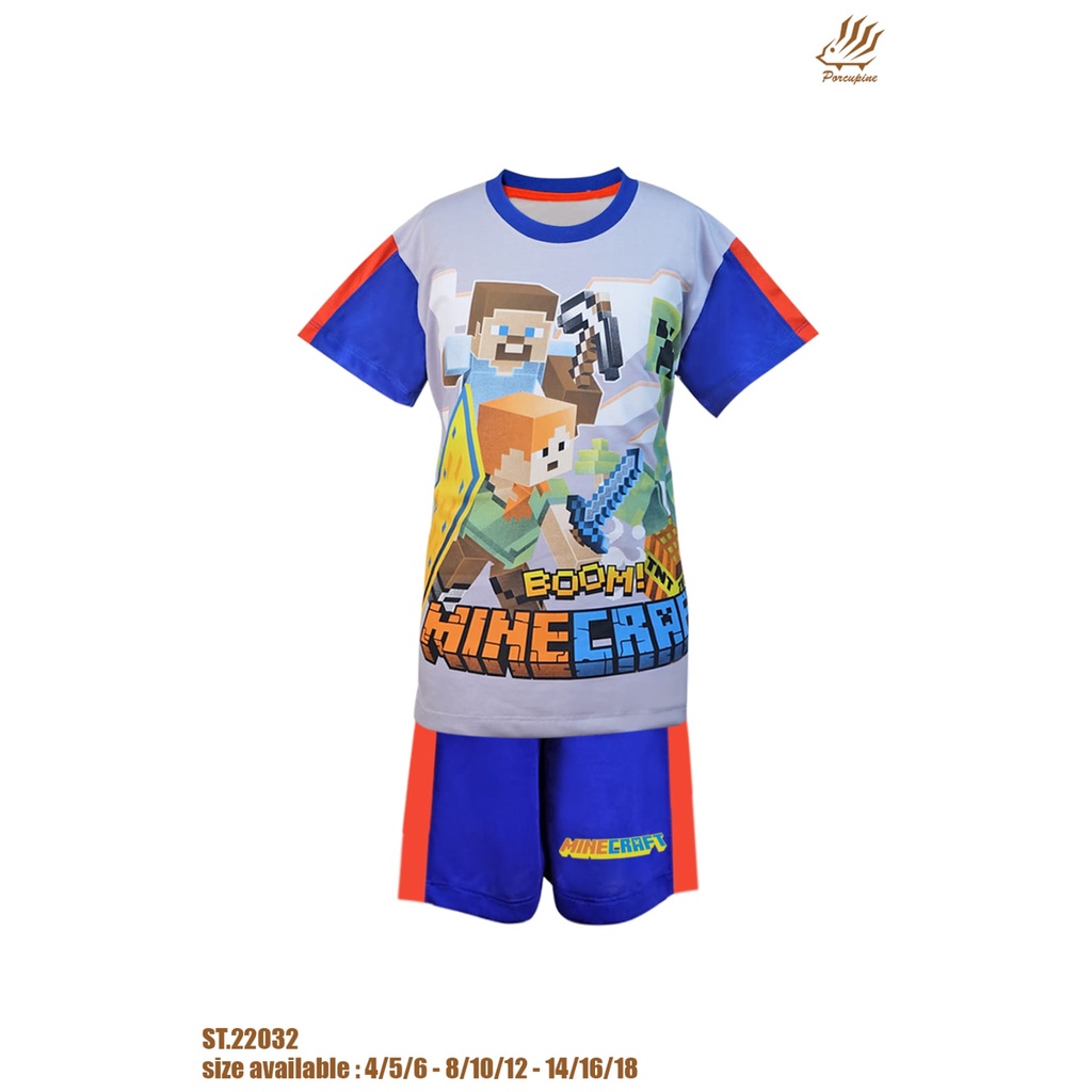 Setelan HP Minecraft Lengan Pendek - Celana Pendek Anak Cowok Porcupine Baju Tidur