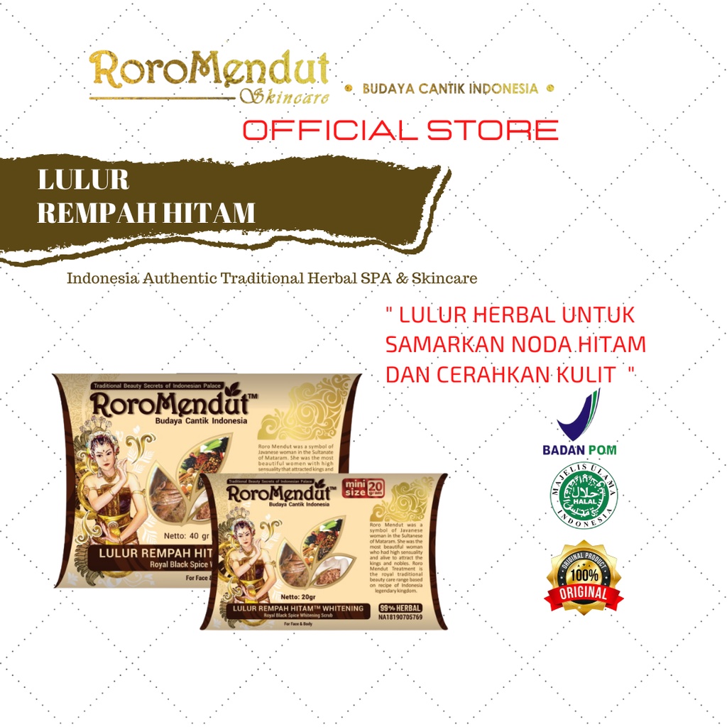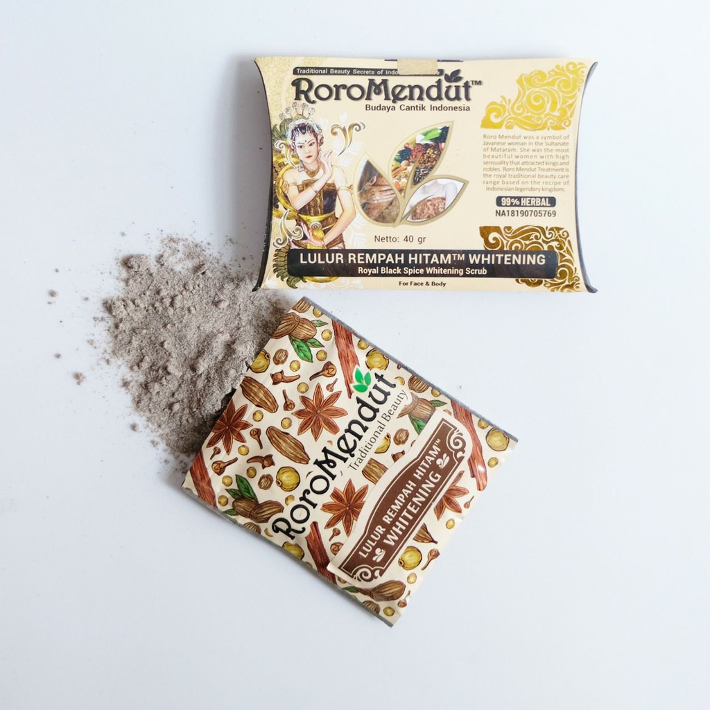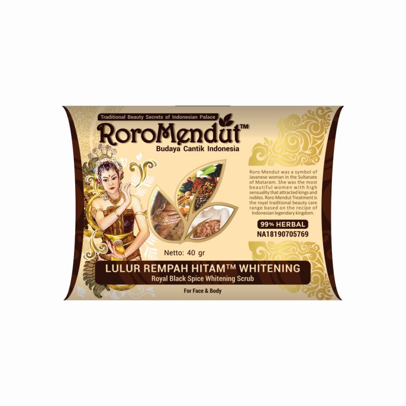 LULUR REMPAH HITAM WHITENING RORO MENDUT, LULUR PEMUTUH BADAN, LULUR PENCERAH BADAN