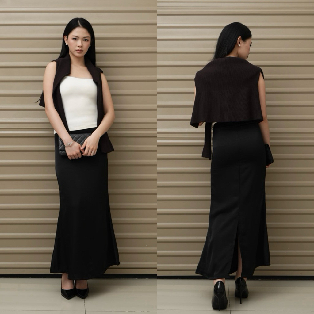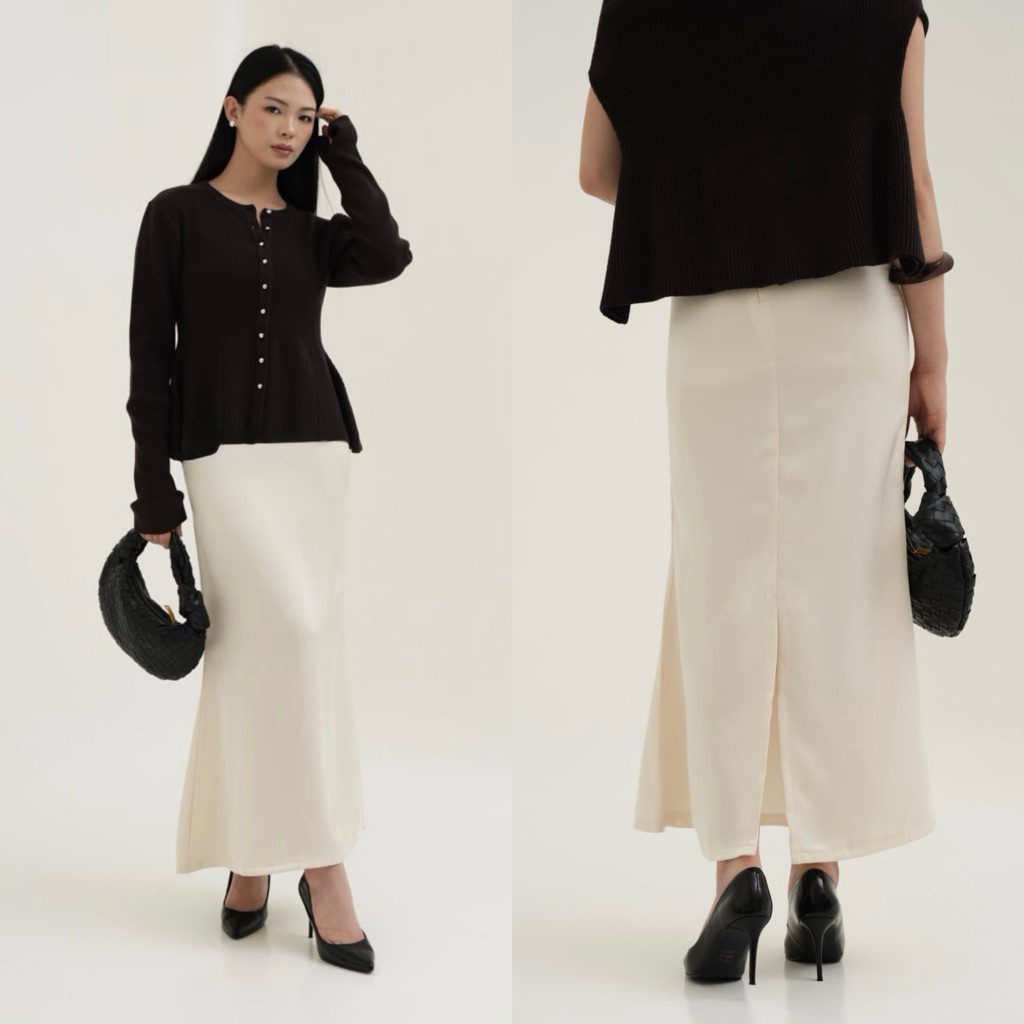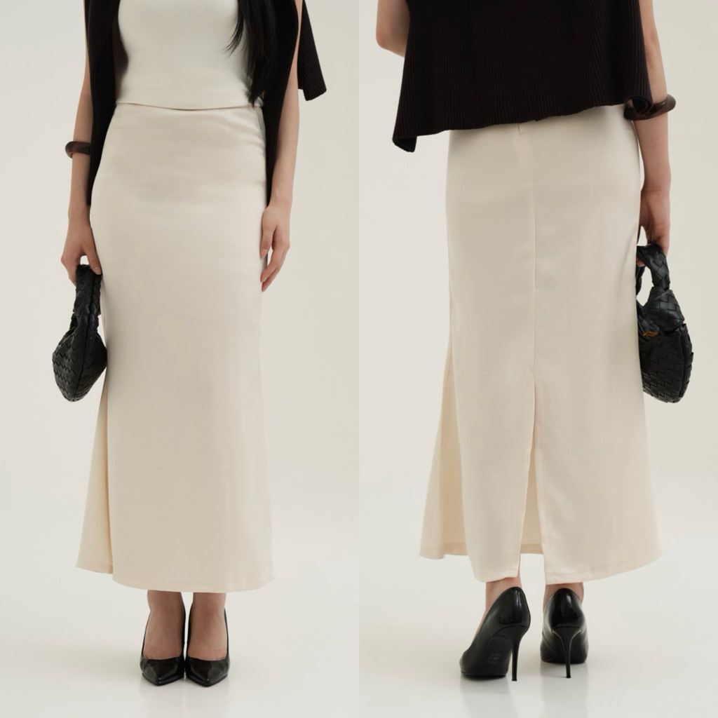 WITH EASE - Jade Silk Satin Skirt (UPGRADED) | Mermaid Silk Skirt with Slit | Rok Satin Panjang | Rok Wanita