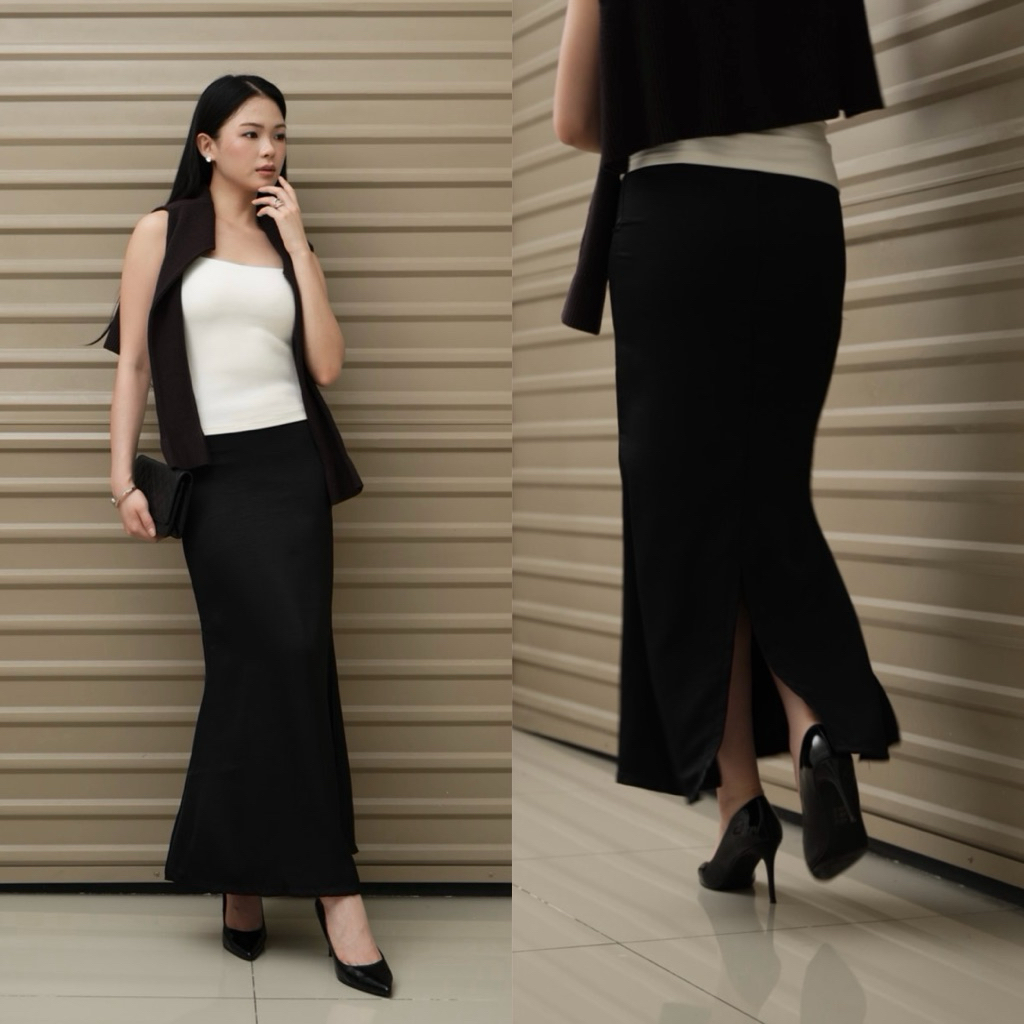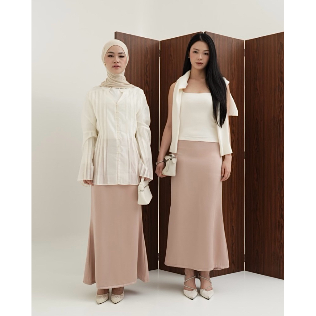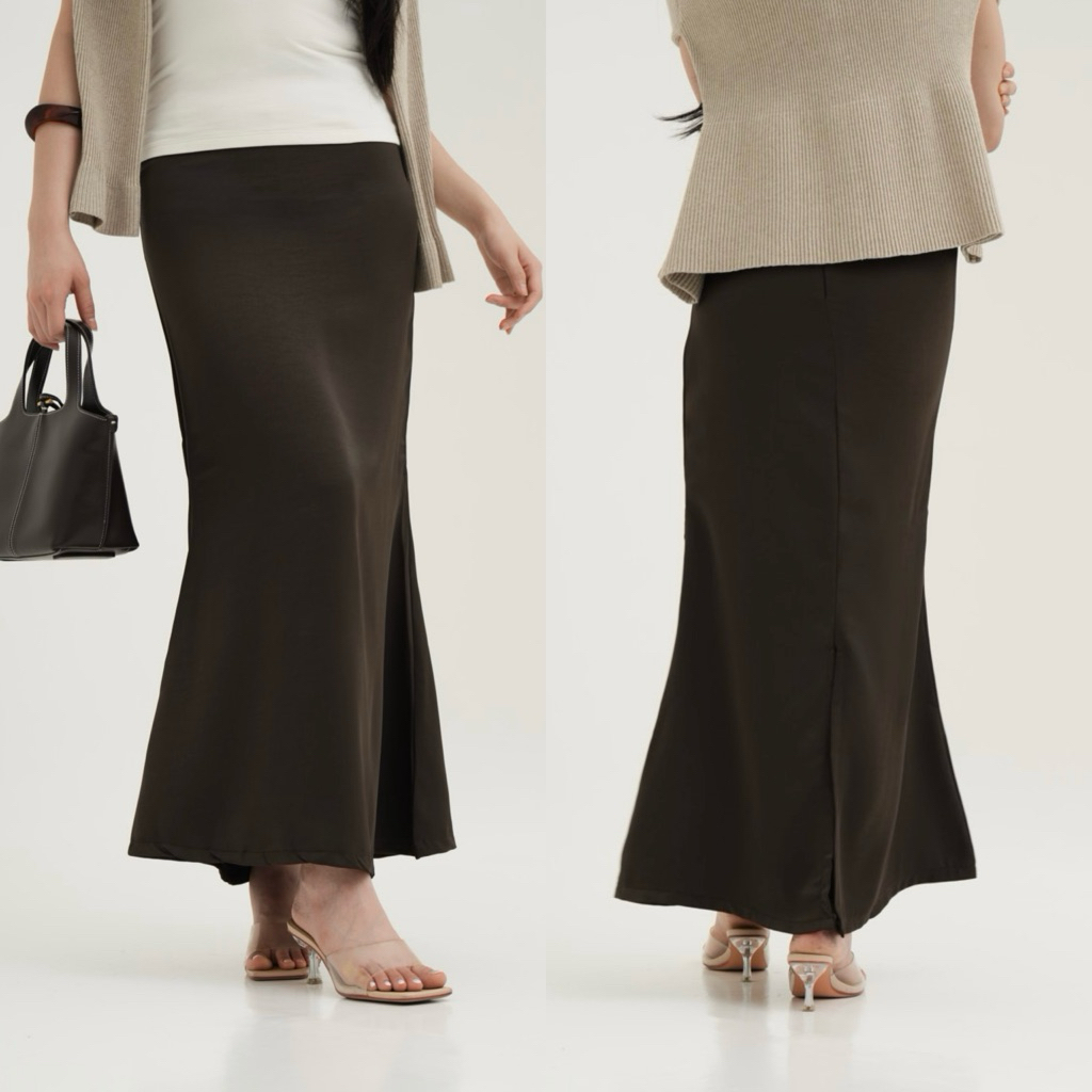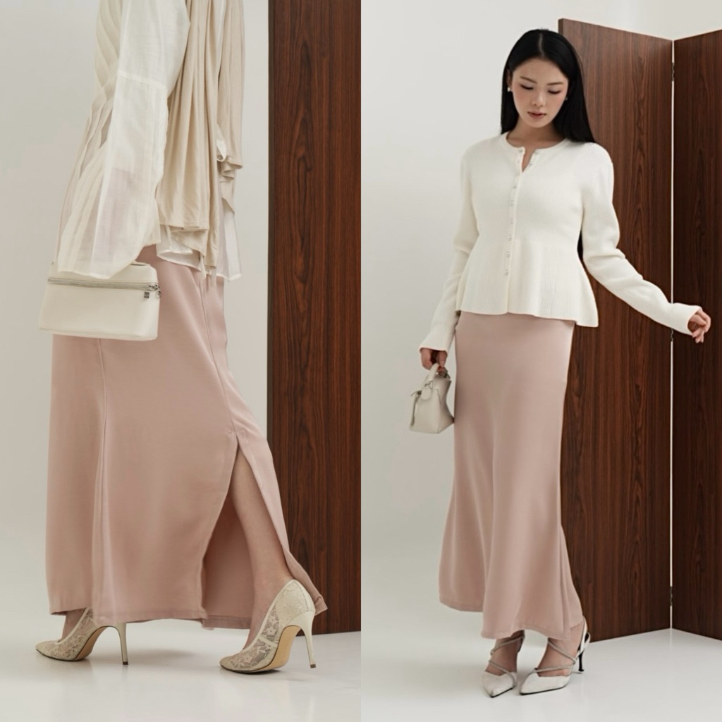 WITH EASE - Jade Silk Satin Skirt (UPGRADED) | Mermaid Silk Skirt with Slit | Rok Satin Panjang | Rok Wanita