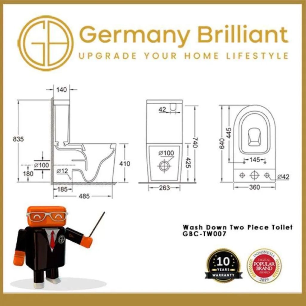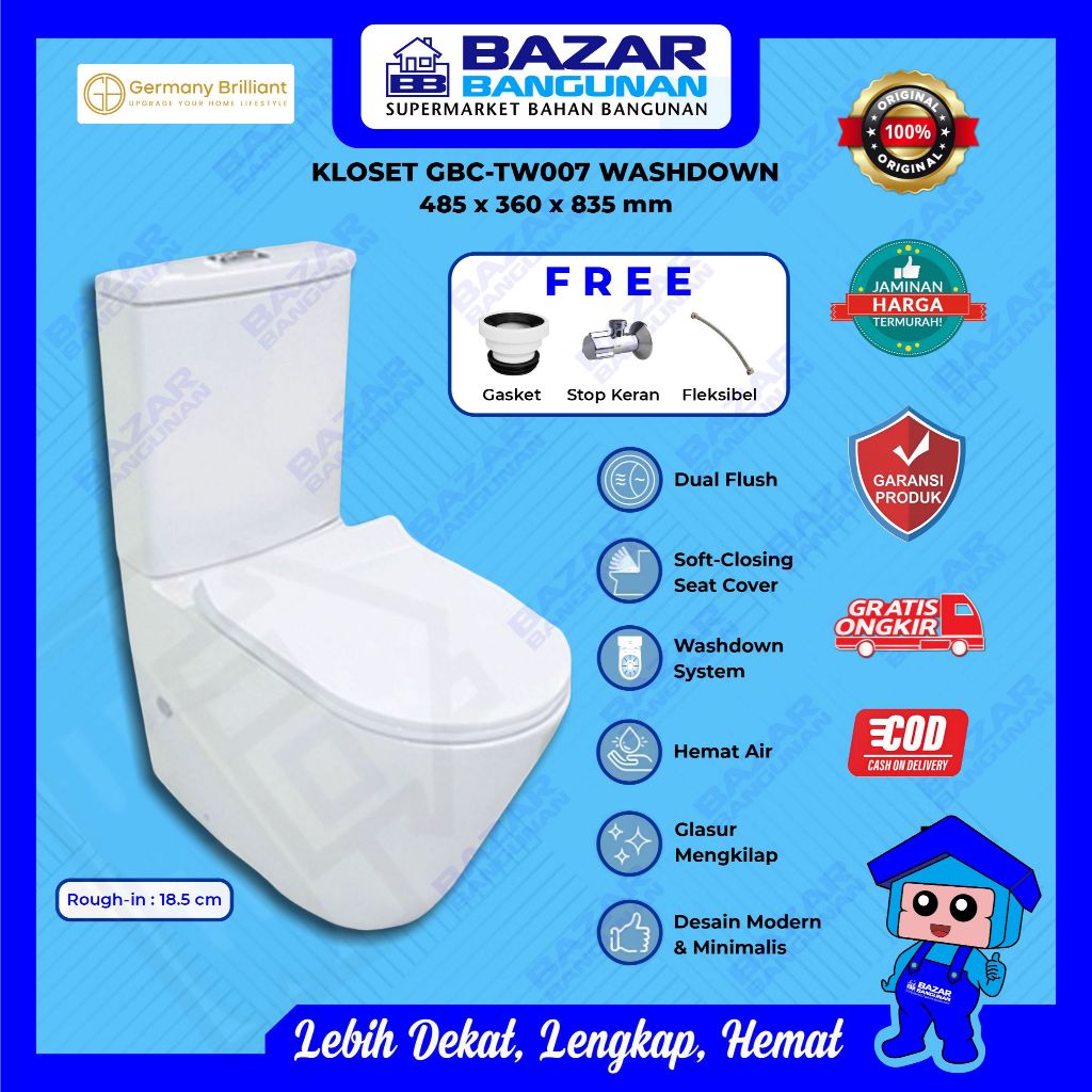 Germany Brilliant - Closet Kloset Toilet Duduk WC GBC TW007 GBCTW007 Dual Flush Soft Close Wash Down
