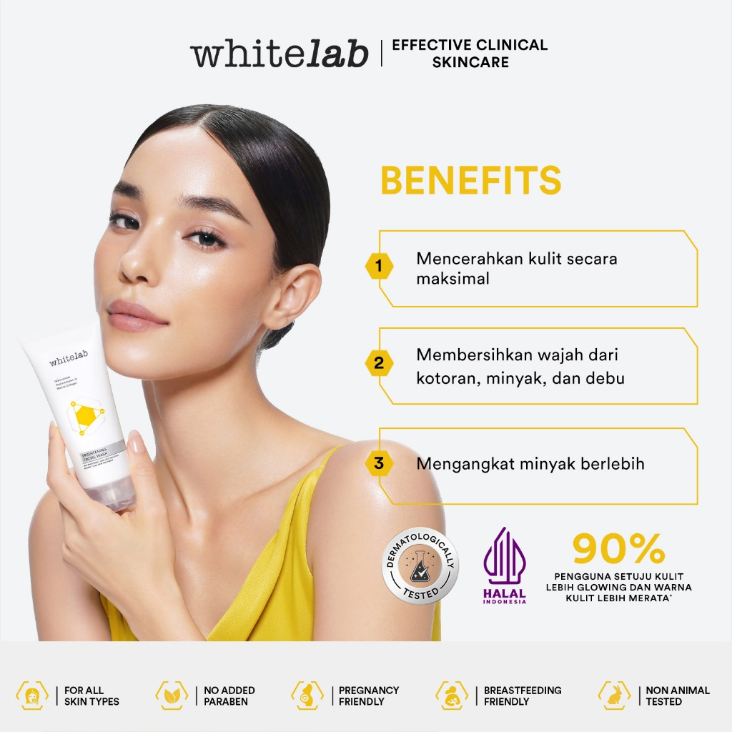 Whitelab Brightening Facial Wash - Sabun Pembersih Muka Pencerah Dengan Niacinamide, Hyaluronic & Collagen [BPOM]