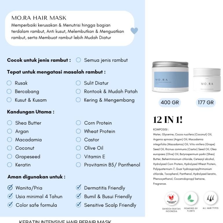 MO.RA Keratin Intensive Hair Repair Mask by Mora Essentials Original 100%