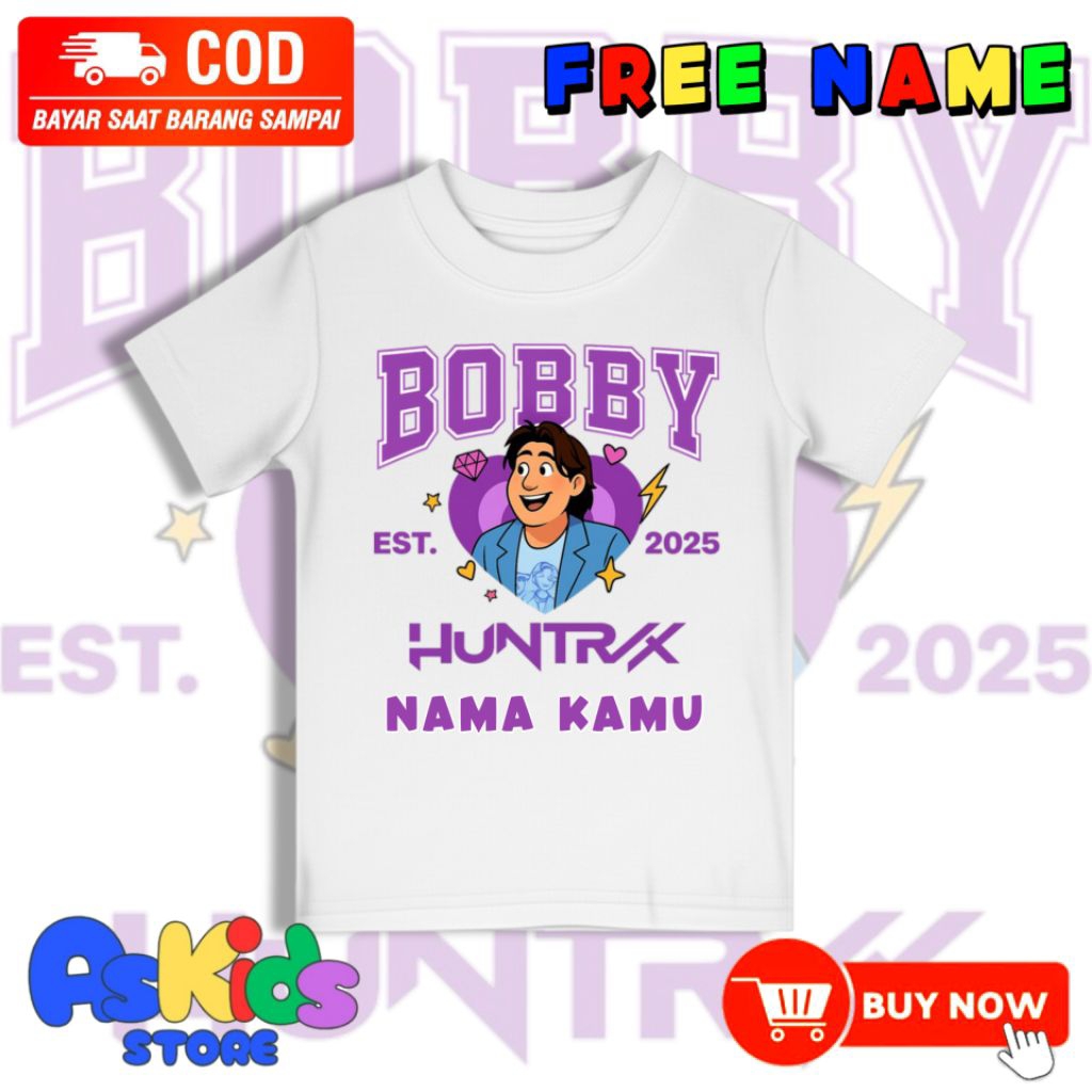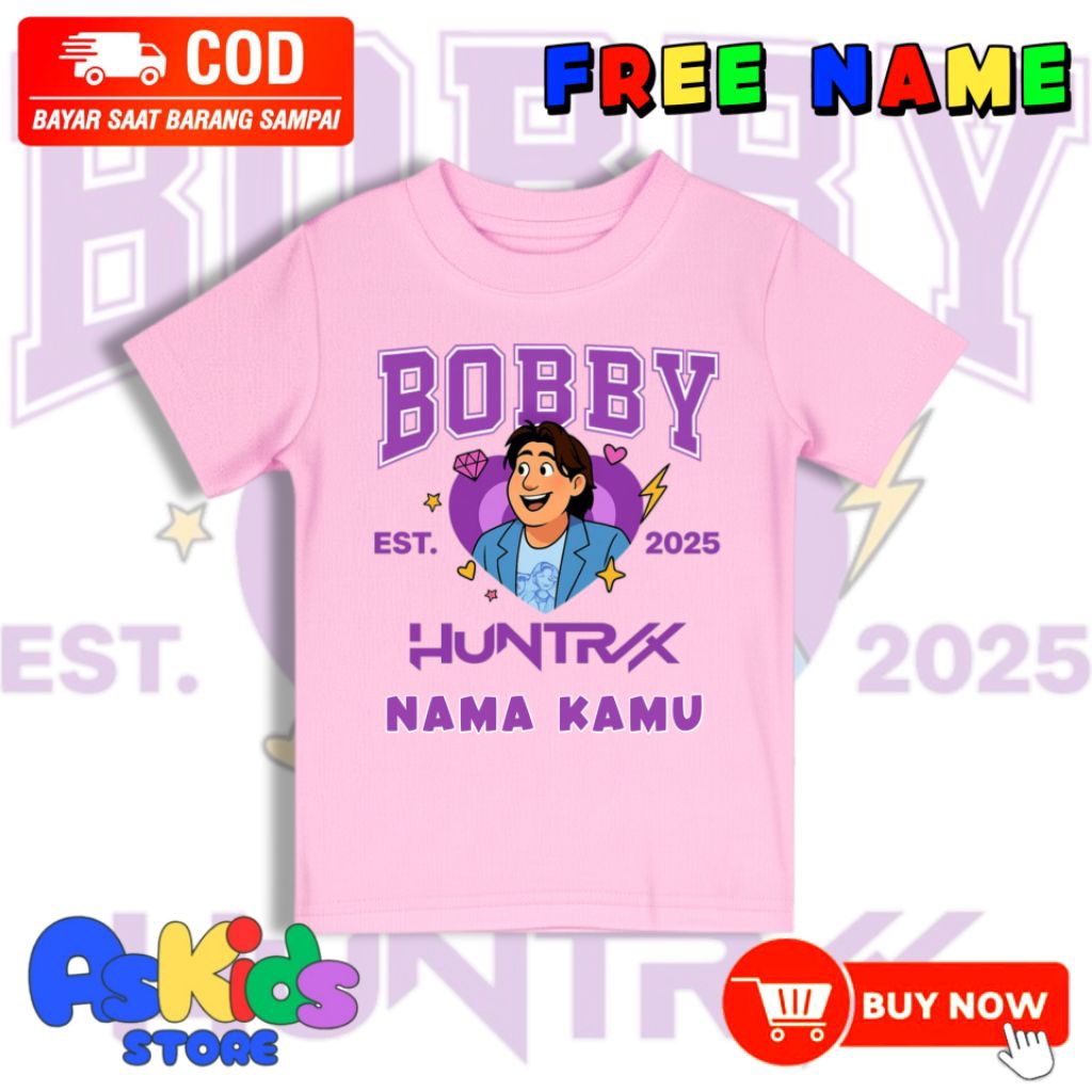 Kaos Anak Bobby Karakter Kpop Demon Hunters Huntrix/Atasan Baju Anak Kekinian FREE NAMA
