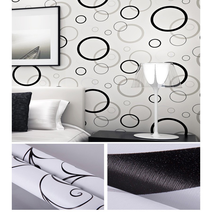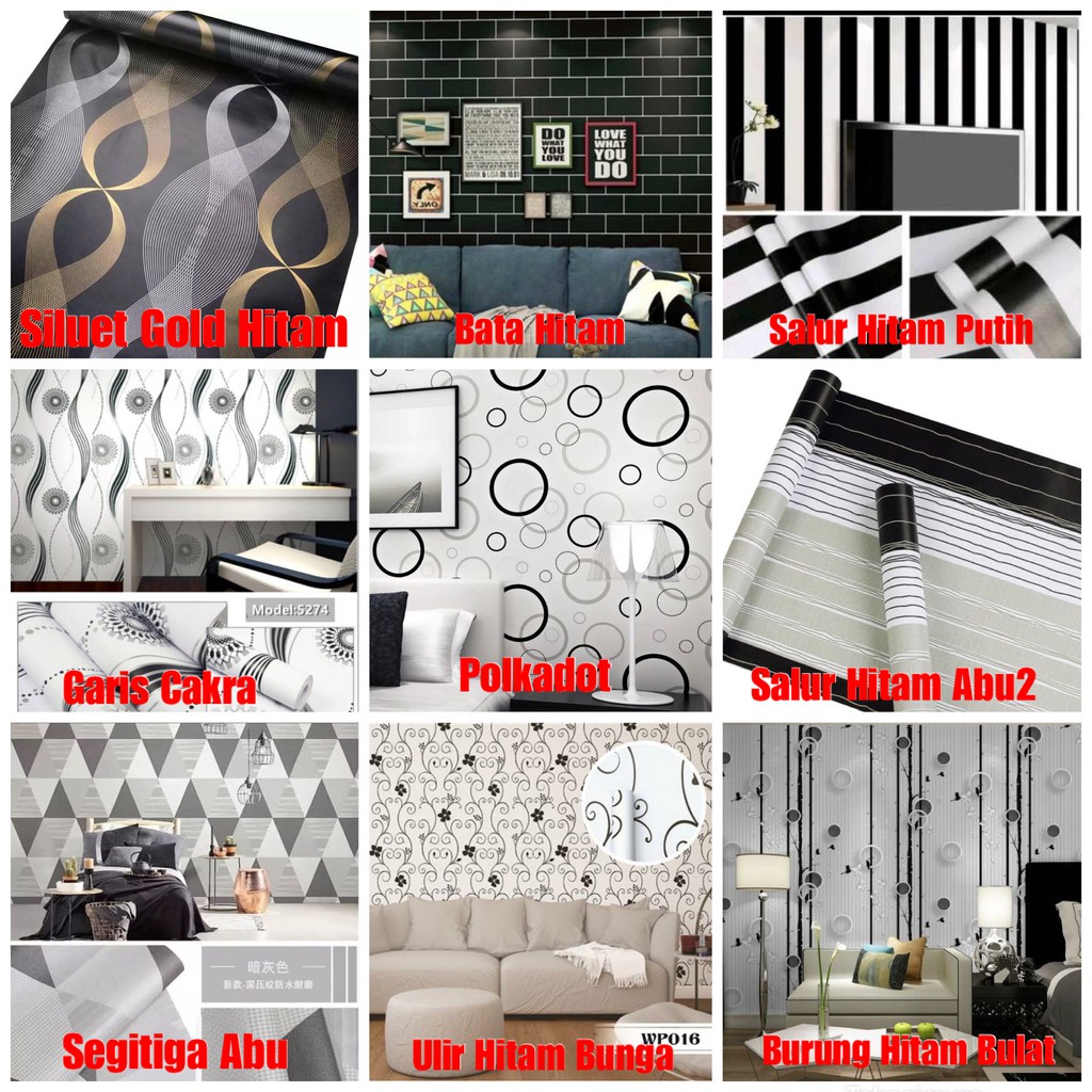 WALLPAPER DINDING ukuran 45 cm x 10 M Motif Garis Hitam Putih Salur Stripe Polkadot