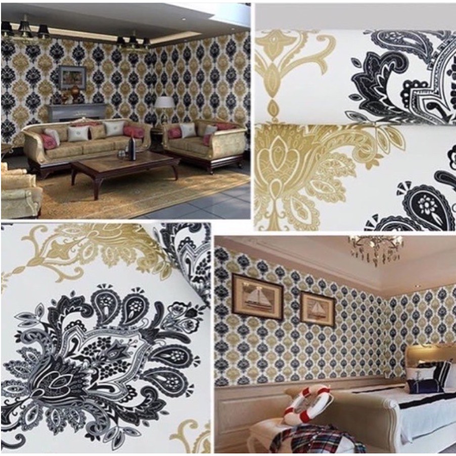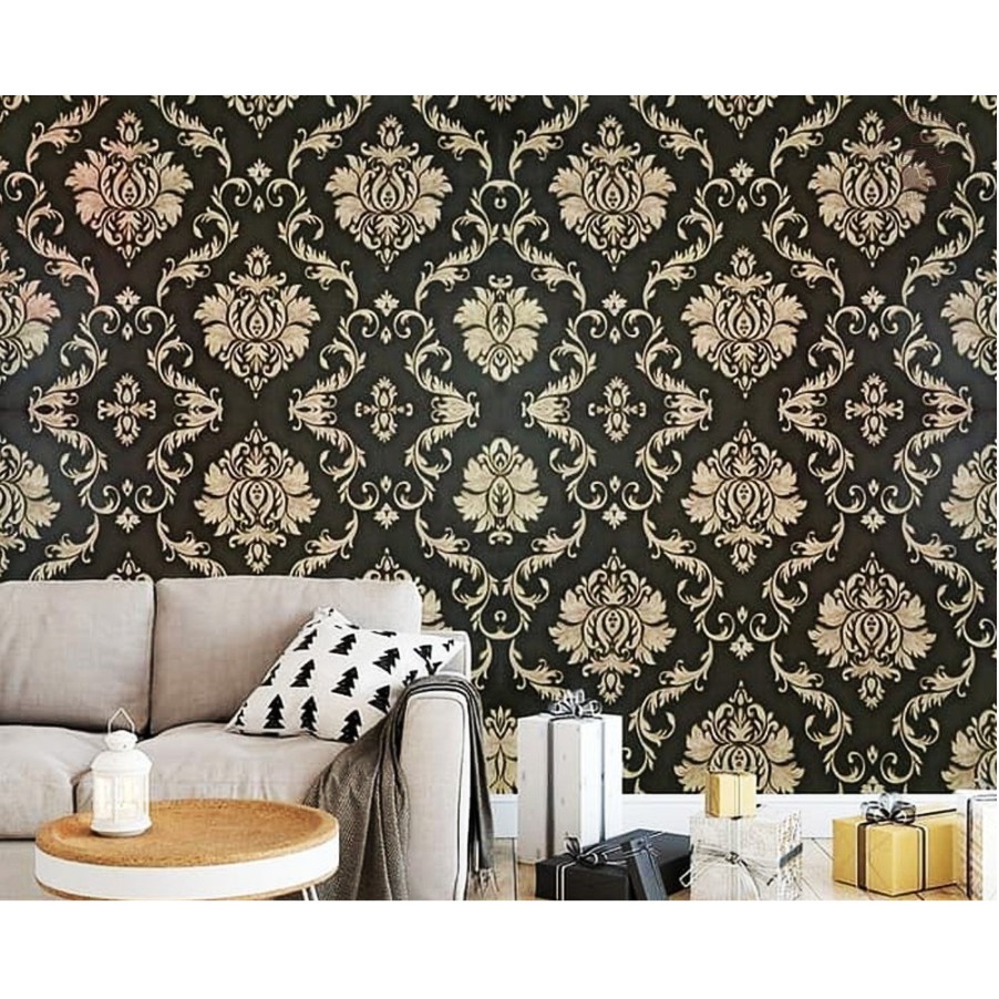 WALLPAPER DINDING ukuran 45 cm x 10 M Motif BATIK MAS EMAS GOLD VINTAGE GRANDE