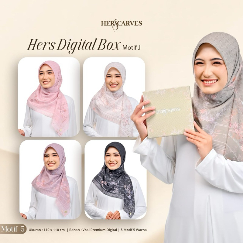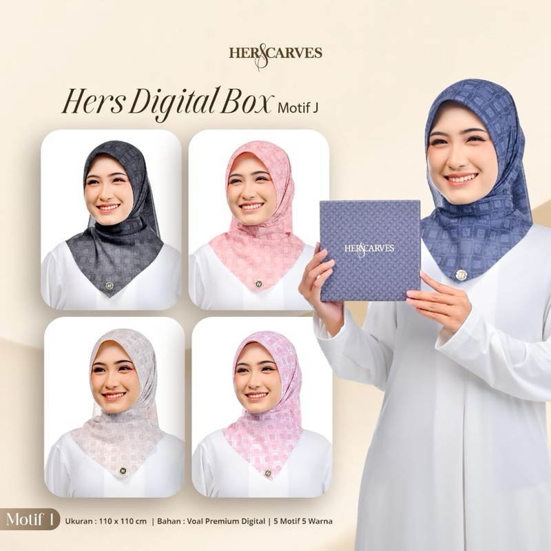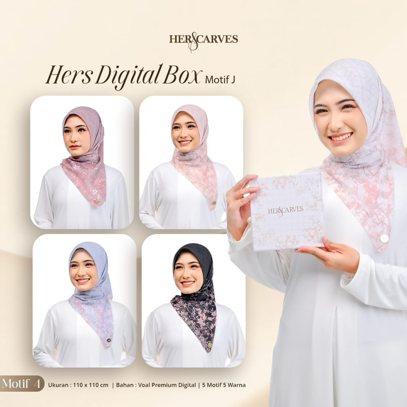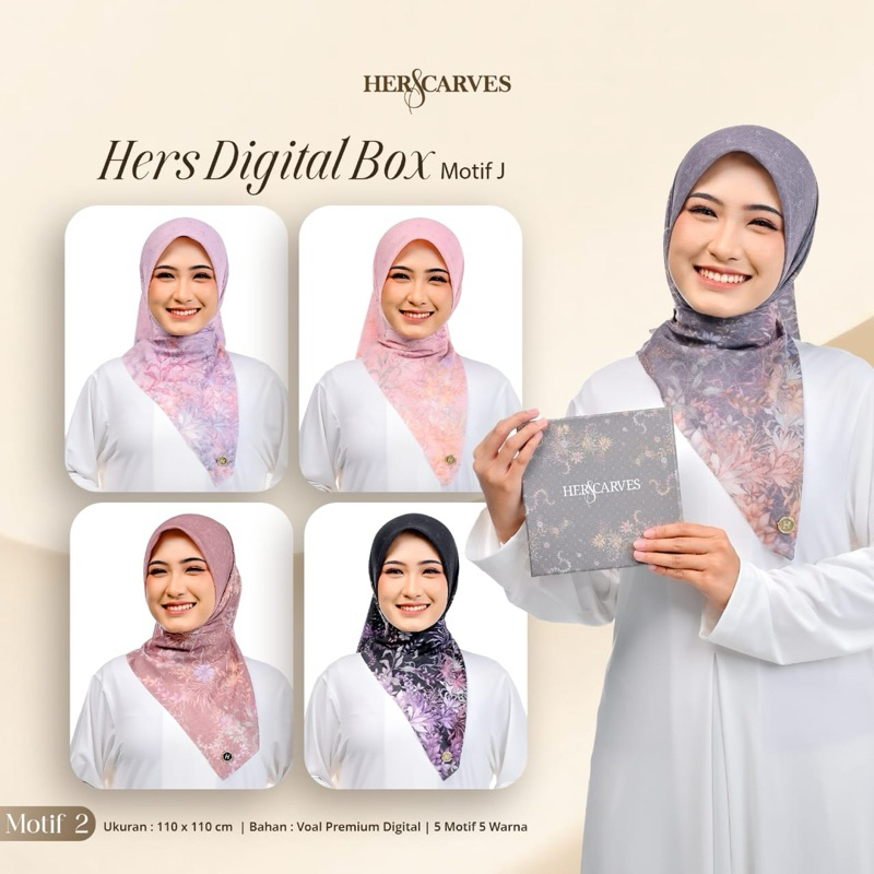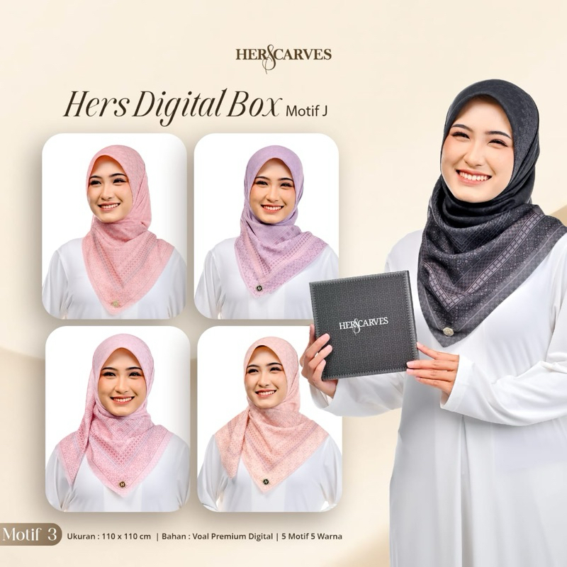 HerScarves | Hijab Kerudung Voal Premium Digital Motif J Tanpa Bros (Kotak ada Pitanya) *