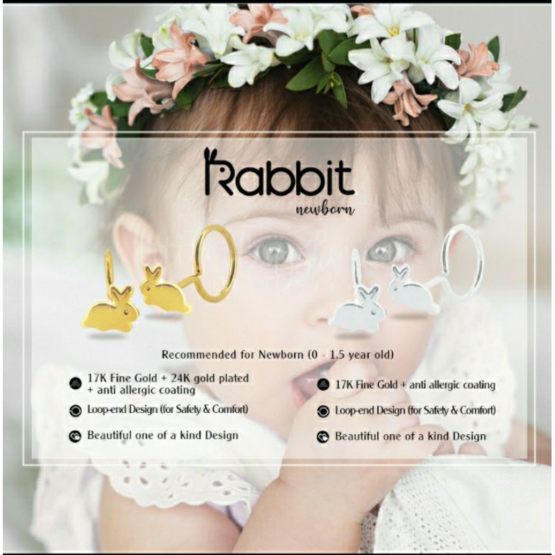 LittleThingSheWear Official - Anting Bayi (NB) - Rabbit (NB) White Gold